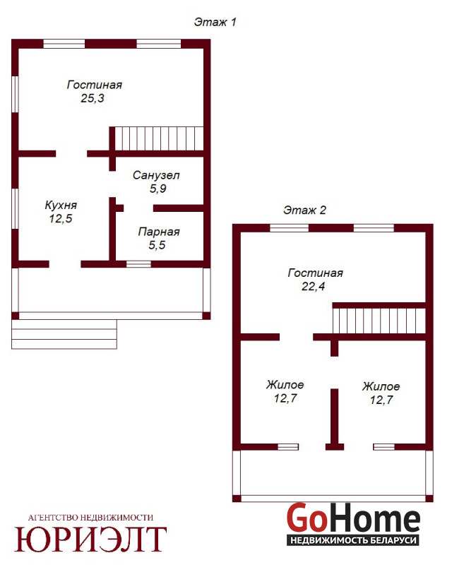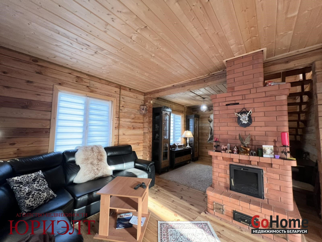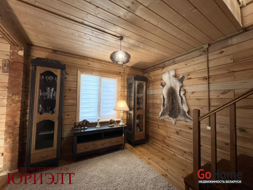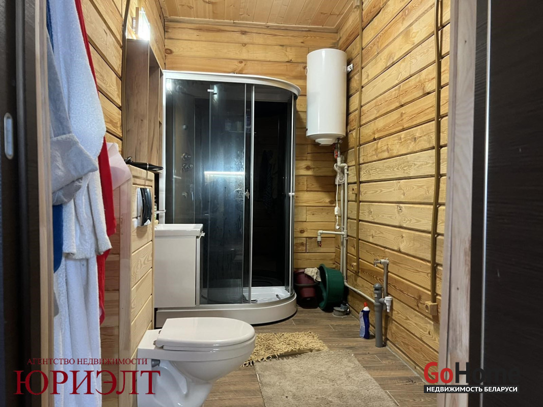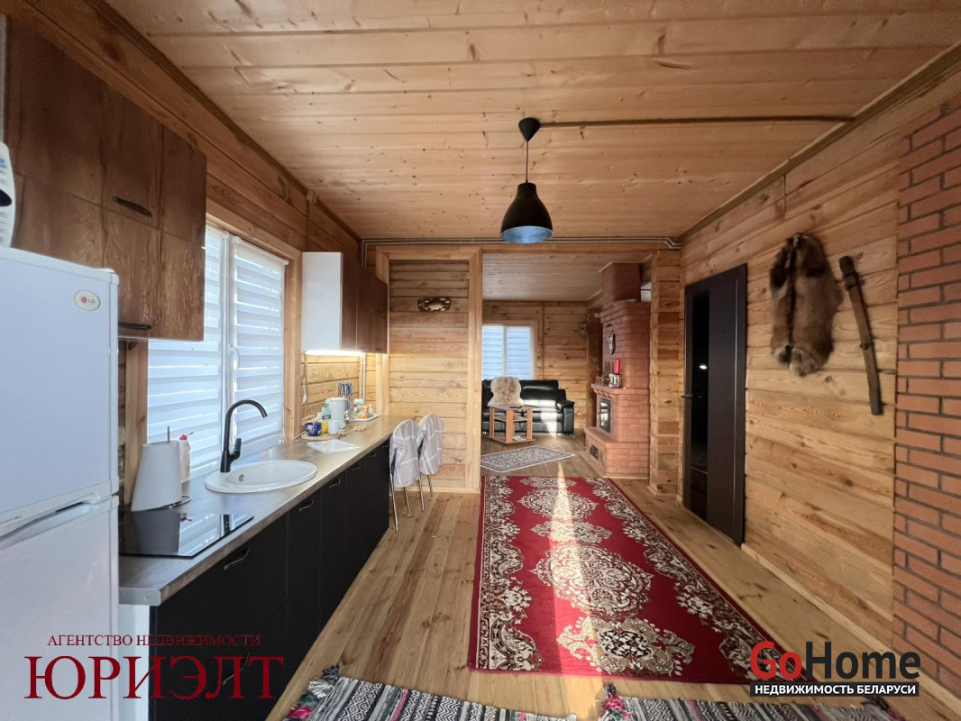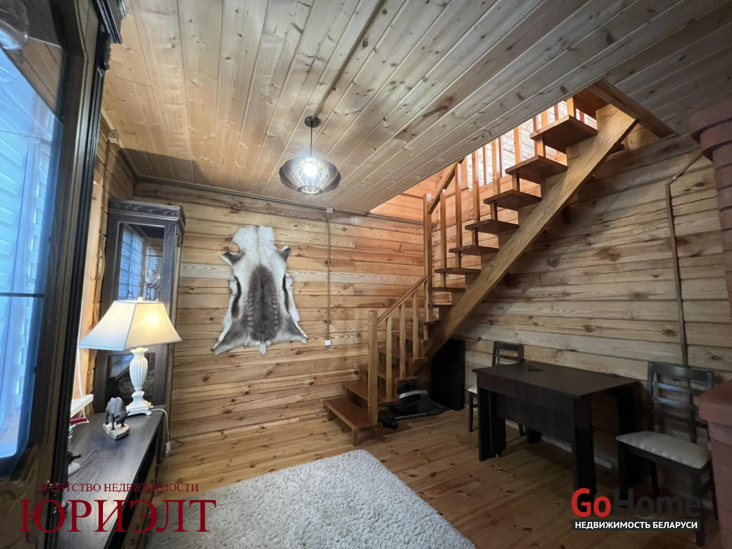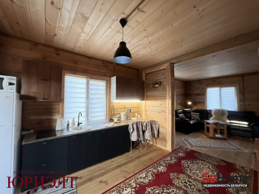 Двухэтажный дом из бруса общей площадью 106,2 кв.м. На первом этаже расположены: кухня-гостиная, санузел, баня;