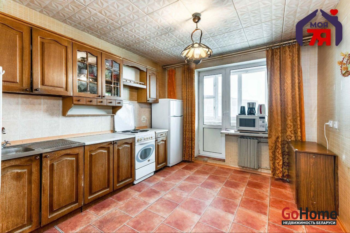 -Просторная кухня (11 кв.м.) оснащена функциональным гарнитуром и предоставляет достаточно места для обеденной зоны. К тому же, из кухни есть выход на застекленную лоджию, где можно устроить комфортную зону отдыха.