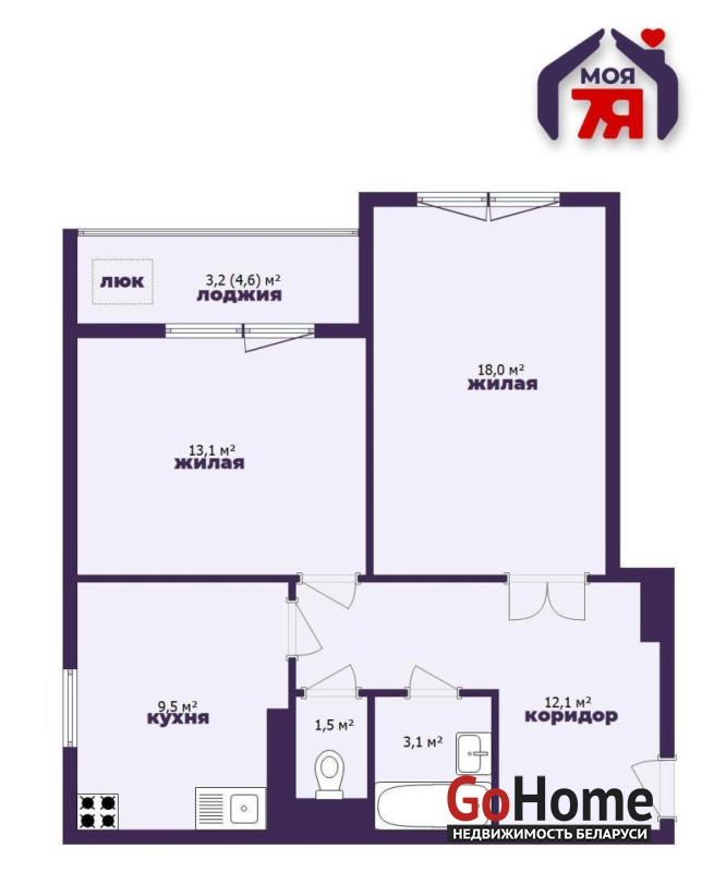 -Общая площадь составляет 60,5 кв.м., жилая - 31,1 кв.м.