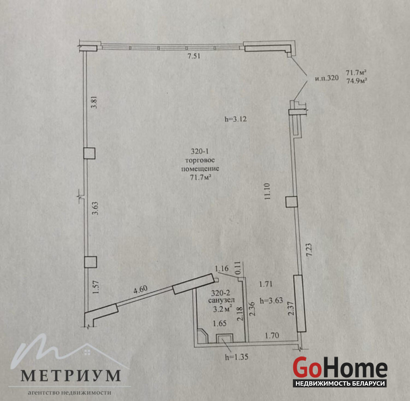 Площадь 74,9 кв.м.
