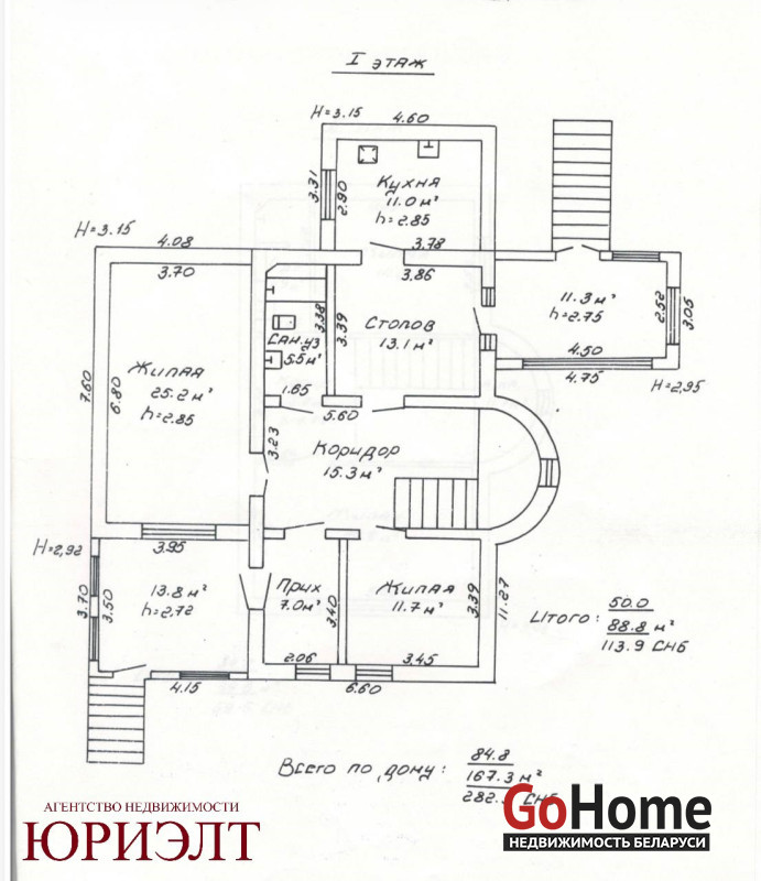 Дом построен из надежного кирпича, общая площадь по СНБ— 282 м.кв., жилая — 84,8 м.кв.