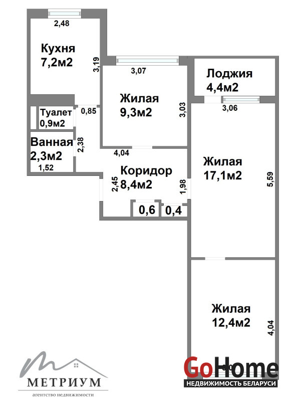 Доступное жильё в Минске 1/2 доли в квартире с отличной локацией, Якубова 24