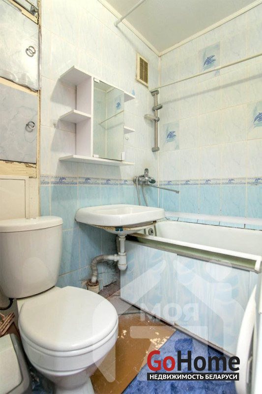-Совмещенный санузел облицован плиткой.