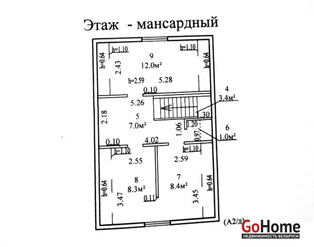 Дом мансардного типа состоит из 4 комнат, кухни, объединенной с гостиной, санузла с горячей водой(бойлер), уютной террасы.