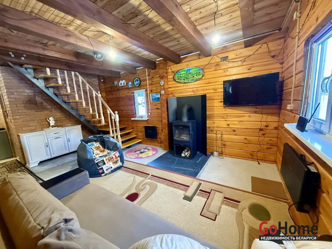 Дом 2022 года постройки, общей площадью 98/48/6,9 м2, построен из бруса, обработанного немецкой пропиткой. Кровля – металлочерепица. Электричество центральное. Отопление электро-конвекторные обогреватели и печь-камин. Вода—скважина с системой очистки, и по всему участку разведена поливочная вода. Канализация—септик.