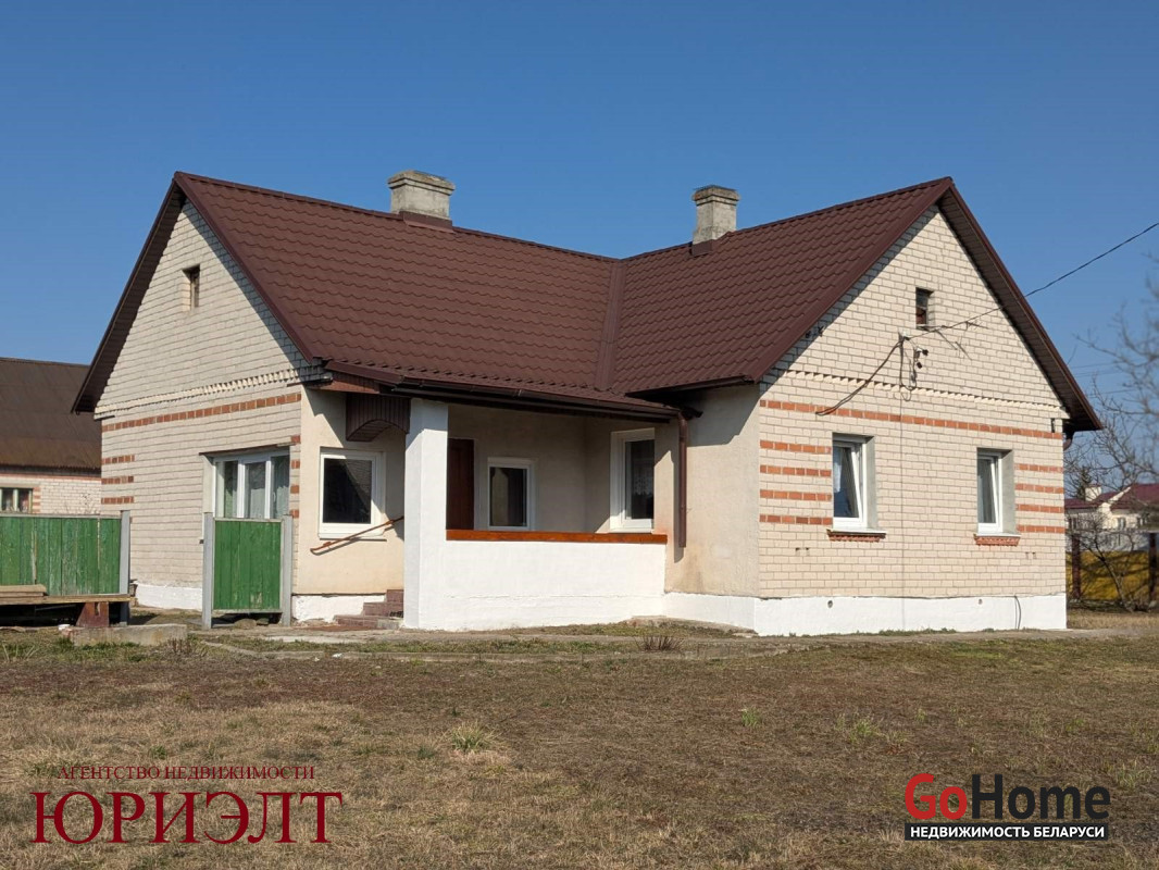 Продается жилой дом с удобствами в ближайшем пригороде Бреста - в агрогородке Клейники! Дом построен в 1989 году из бруса, обложен кирпичом, крыша - металлочерепица. Общая площадь - 76 кв.м., жилая - 37.5 кв.м., кухня - 9 кв.м. Имеется три жилые комнаты, кухня, санузел, кладовая, просторная веранда, русская печь. Аккуратное жилое состояние. Хозпостройки: блочный сарай и гараж с ямой.