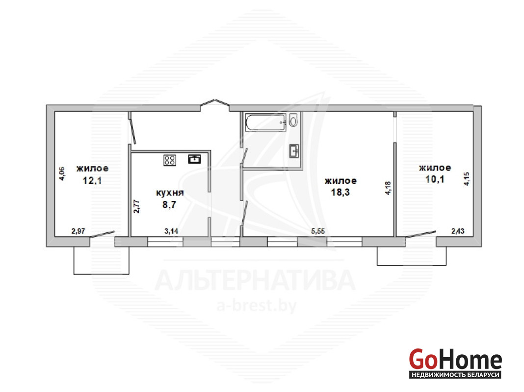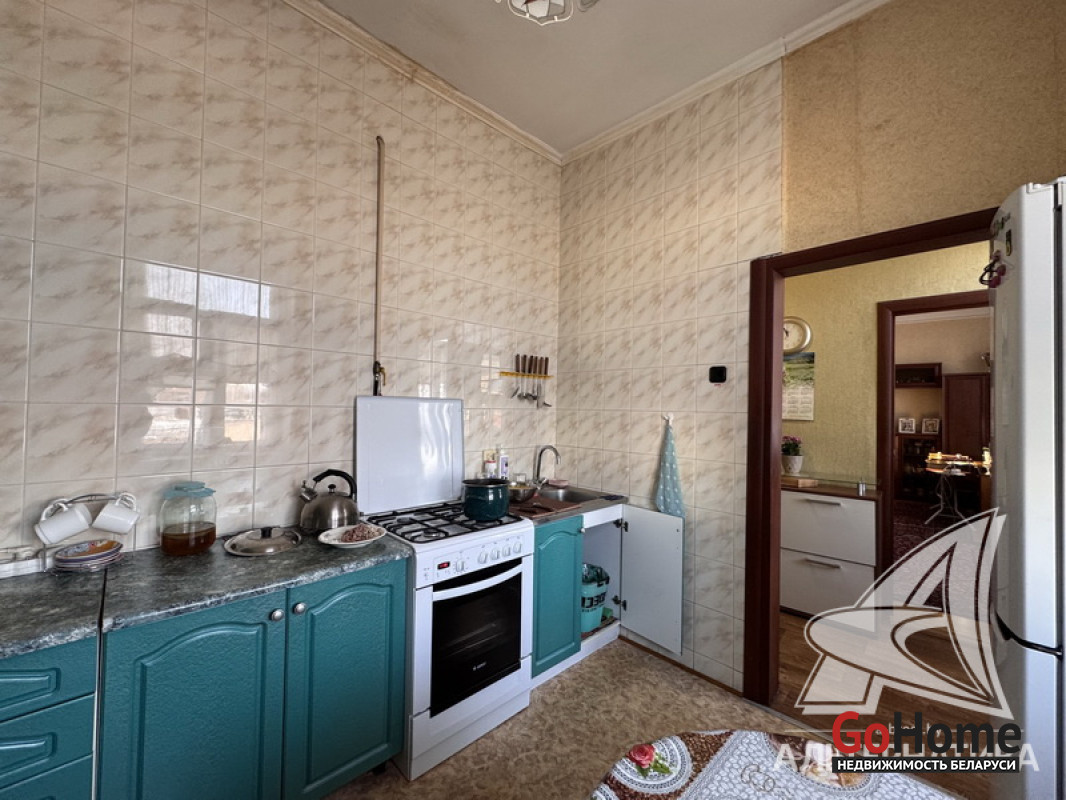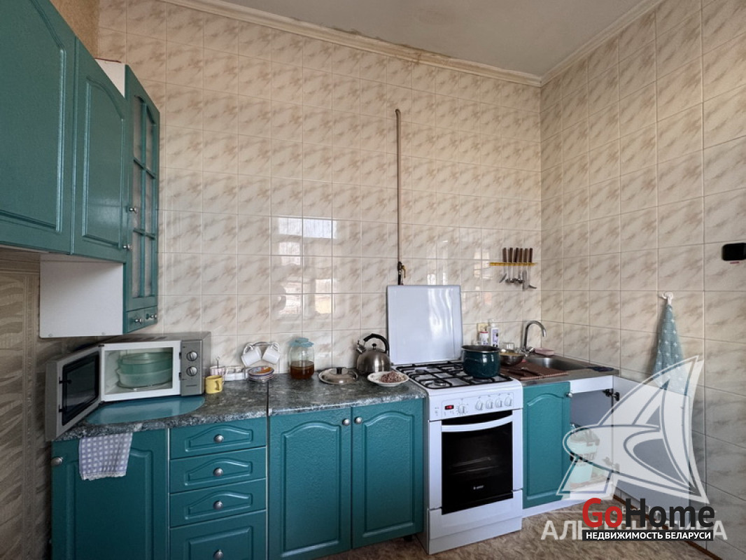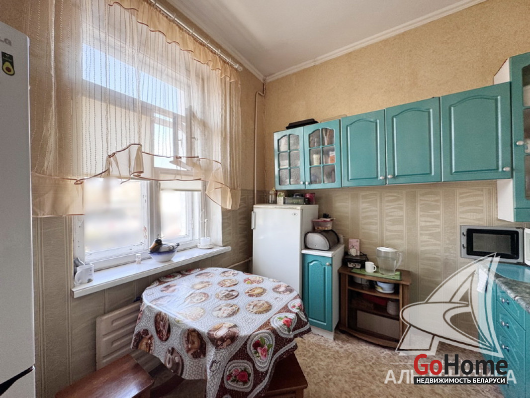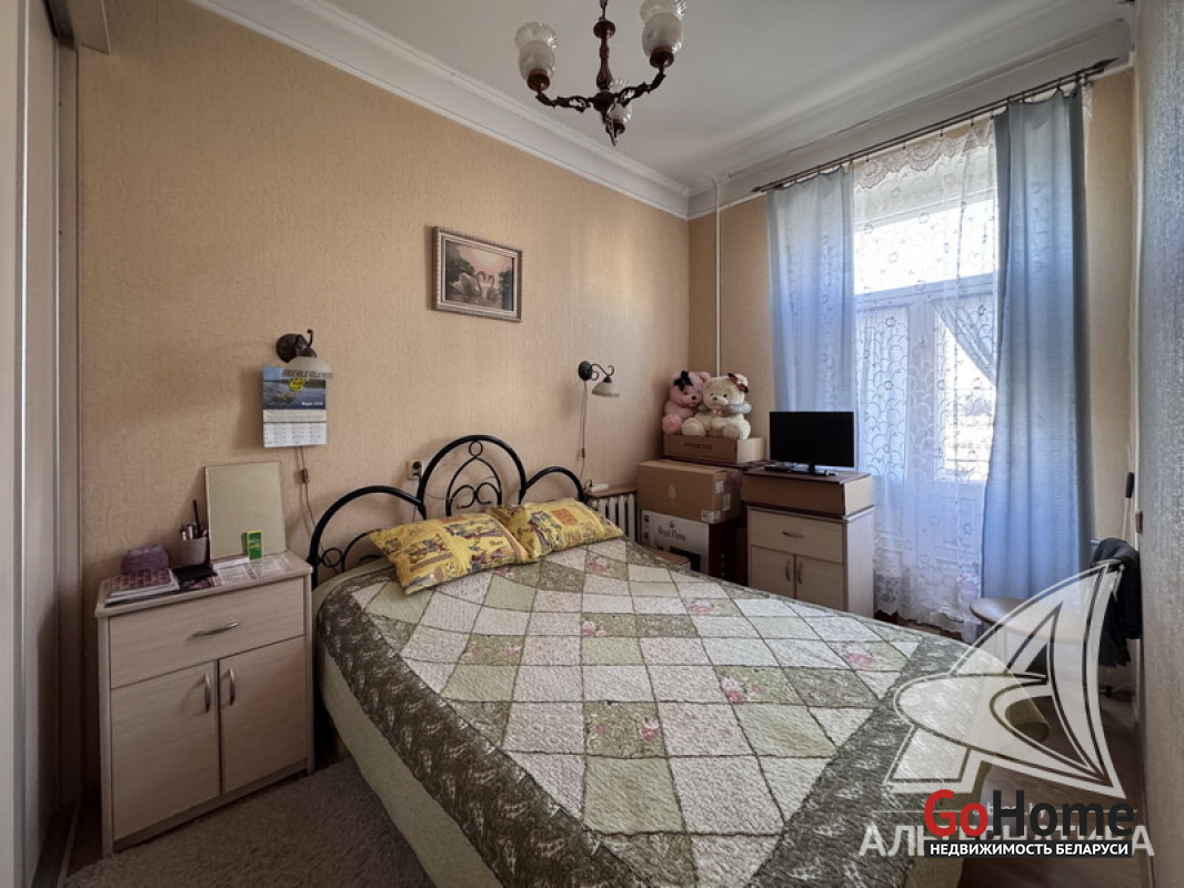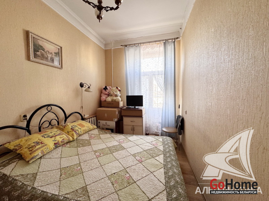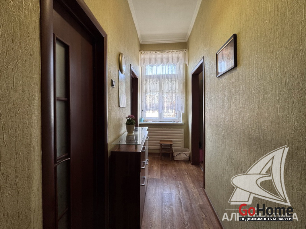 3-комнатная квартира, г. Брест, ул. Советская, 1930 г.п., 2 / 2 кирпич, 63,7 / 62,7 / 40,5 / 8,7, санузел совмещенный, два балкона, деревянные стеклопакеты, межкомнатные двери - МДФ, входная дверь металлическая, потолки - снежка (3,10 м), полы (положены на доску) - крашеная доска (в комнате), ламинат (в двух комнатах) и линолеум, стены оклеены обоями, в санузле современная плитка, чугунная ванна, заменены сантехнические трубы, новый электросчетчик, телефон. Кухонный гарнитур, газовая плита, встроенный шкаф-купе (в спальне), рольшторы, светильники. Квартира с хорошим ремонтом. Чистый подъезд. Капитальный ремонт дома 2014 г. Заменены внутридомовые коммуникации. Произведен ремонт крыши. Утепление дома шубой и боковых фасадов дома. Лот - 260378