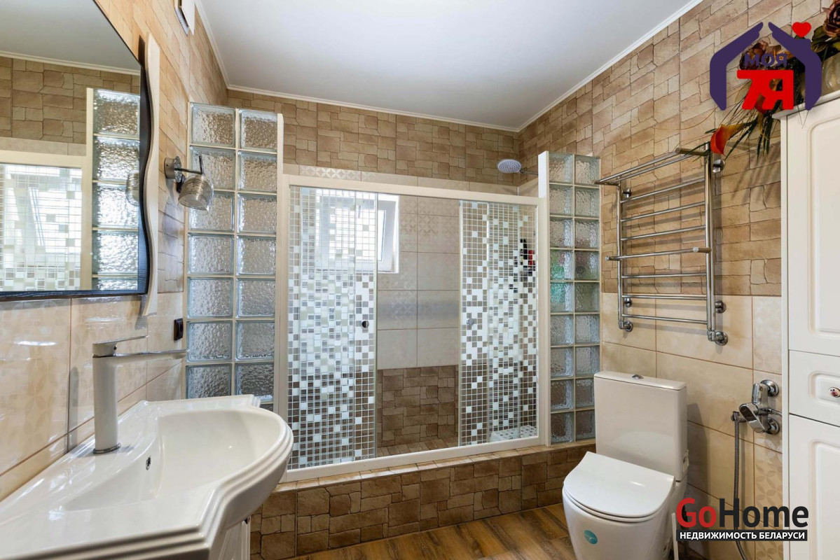 - В доме имеется два санузла с качественной отделкой: один совмещенный, один раздельный. Также имеются теплые водяные полы, установлен бойлер.