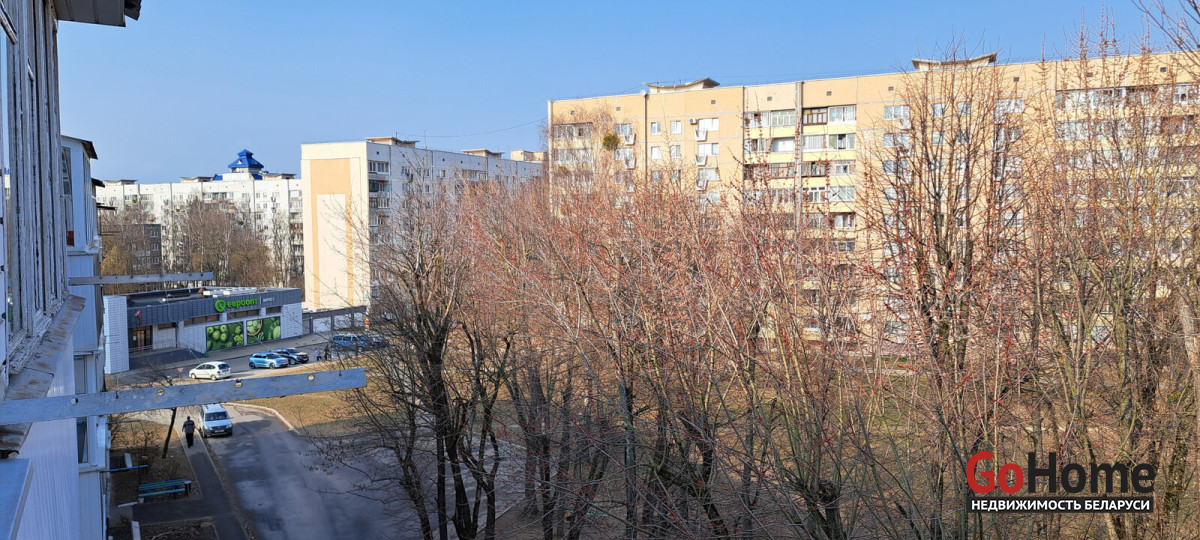 Дом находится в зелёном дворе, далеко от дороги. Тихий двор, спокойные соседи, чистый подъезд. Рядом с домом магазин "Евроопт" и "Алми".