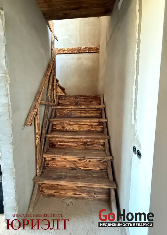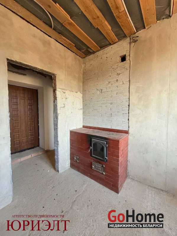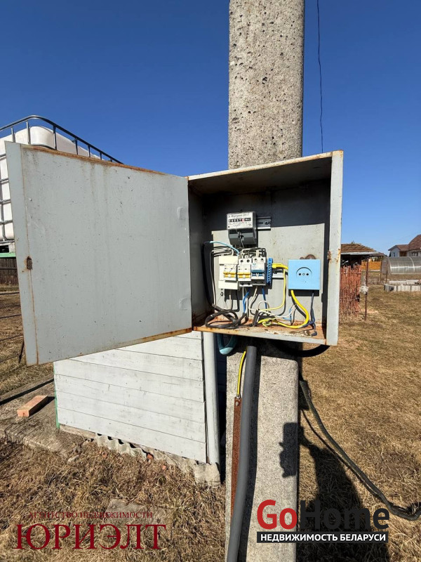 Коммуникации: Свой источник воды — скважина уже введена в дом (останется только подключить сантехнику). Автономная канализация (4 бетонных кольца) решает вопрос удобства независимо от центральных сетей.