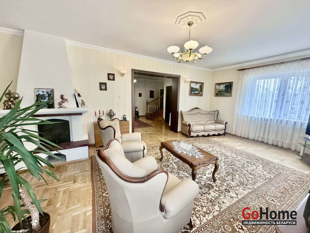 Продуманная и функциональная планировка: на первом этаже расположена кухня с большой террасой и гостиная, в коридоре вместительный шкафа-купе, на втором этаже три комнаты с выходом на открытую террассу и балкон, санузел. Имеется большой подвал с сауной и бассеином.