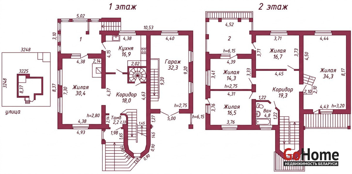 Участок ровный, прямоугольной формы, огорожен со всех сторон. Хорошие подъездные пути. Имеется два гаража, один с входом из дома, второй отдельно стоящий на территории.