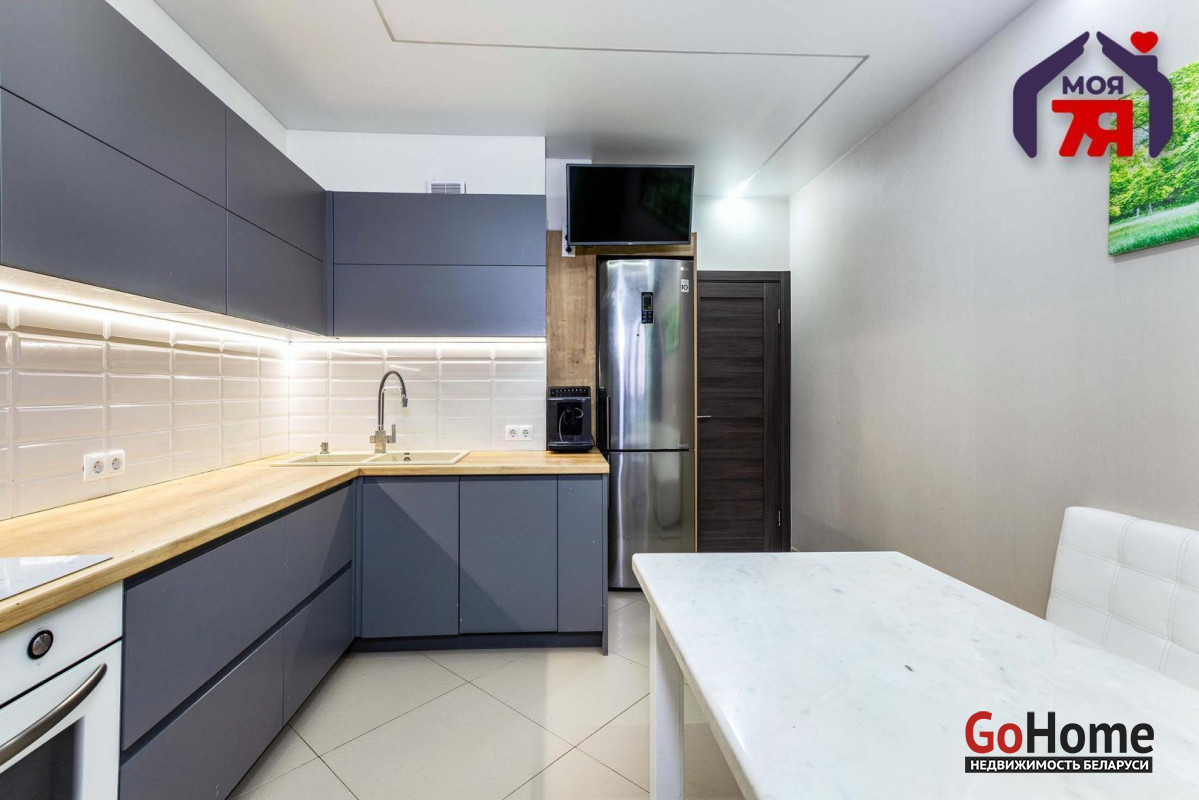 - Кухня выполнена из качественных материалов и имеет хорошую фурнитуру, оснащена всей необходимой мебелью и техникой. Также на кухне имеется теплый пол.