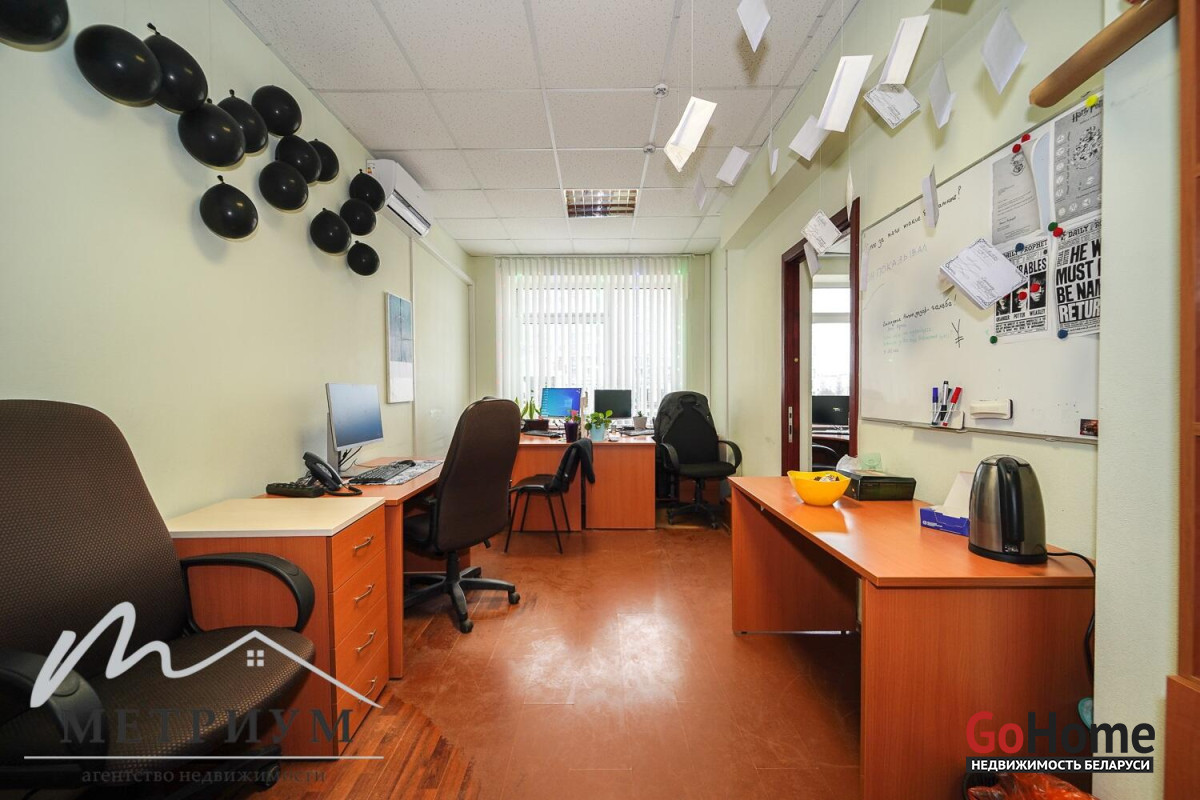 Объект представляет собой просторное помещение с 8-ю выделенными кабинетами. Помещение имеет два входа, естественное освещение, пожарную сигнализацию, систему кондиционирования, произведена внутренняя разводка компьютерной сети и телефонной линии. Есть все необходимые коммуникации: электричество, отопление, вода, канализация, оптоволокно, кондиционеры.