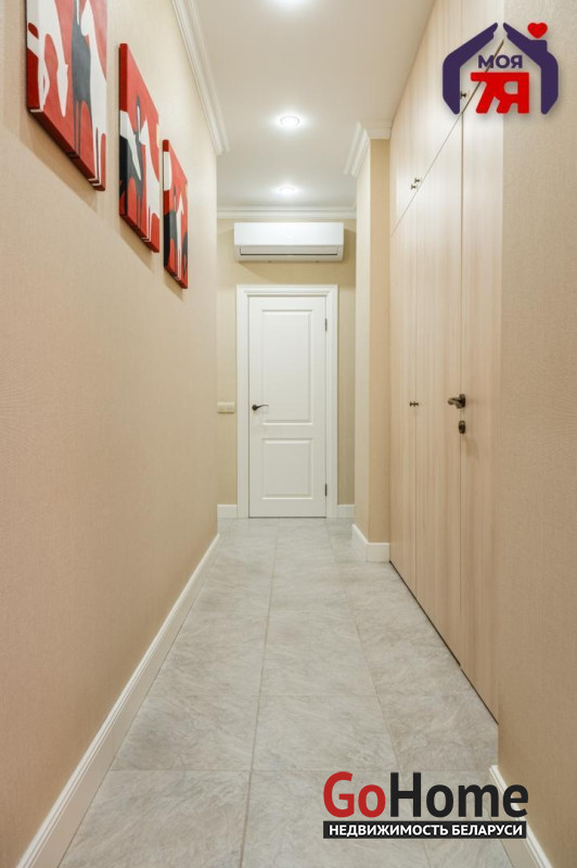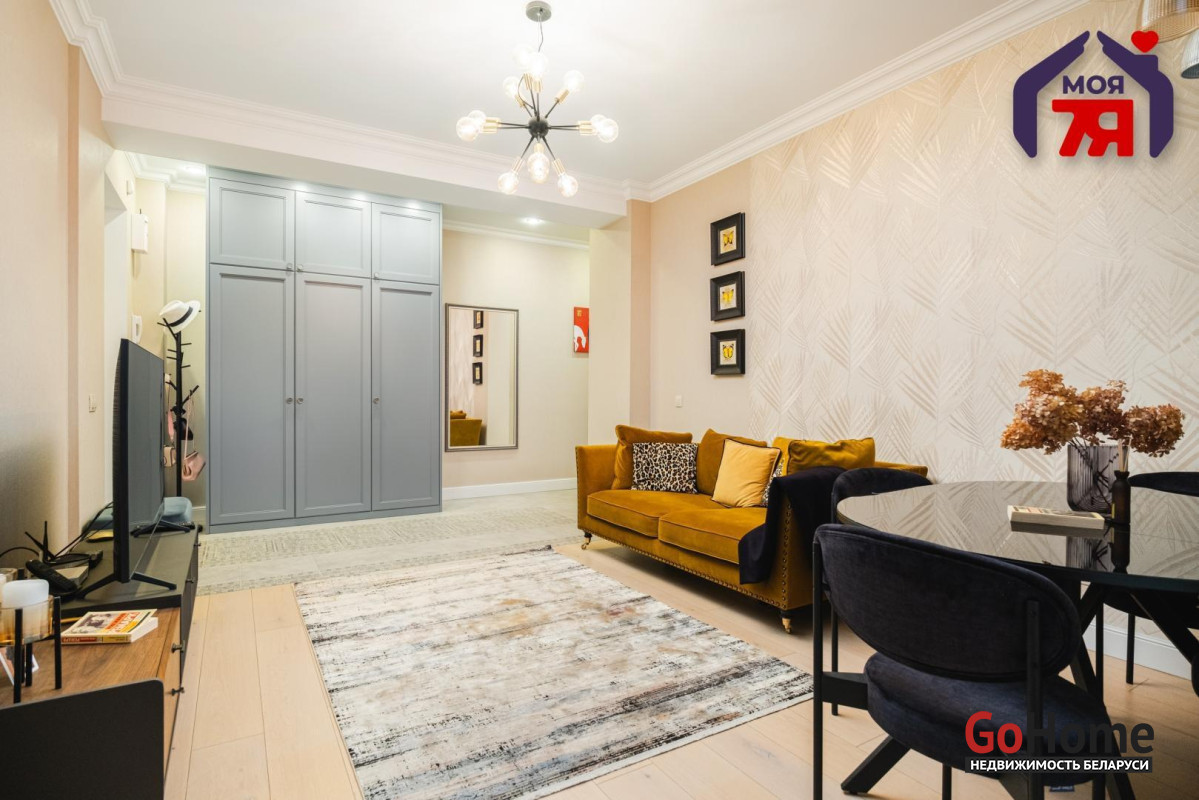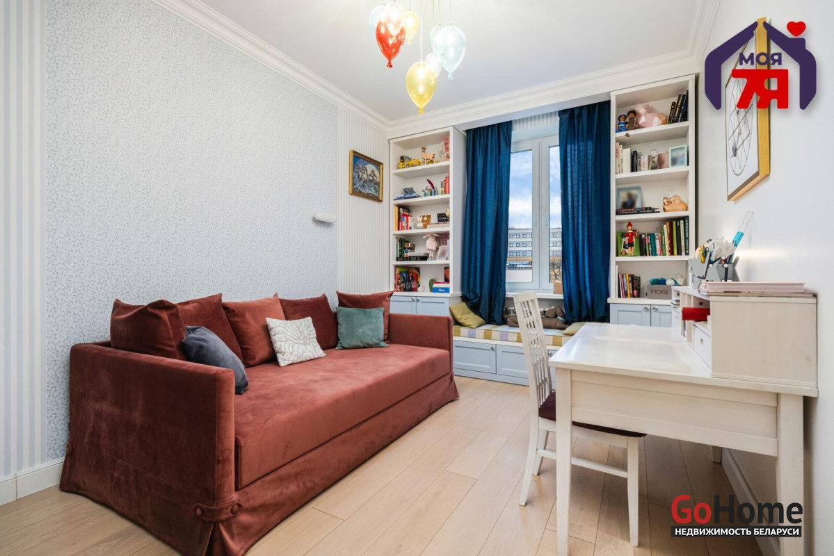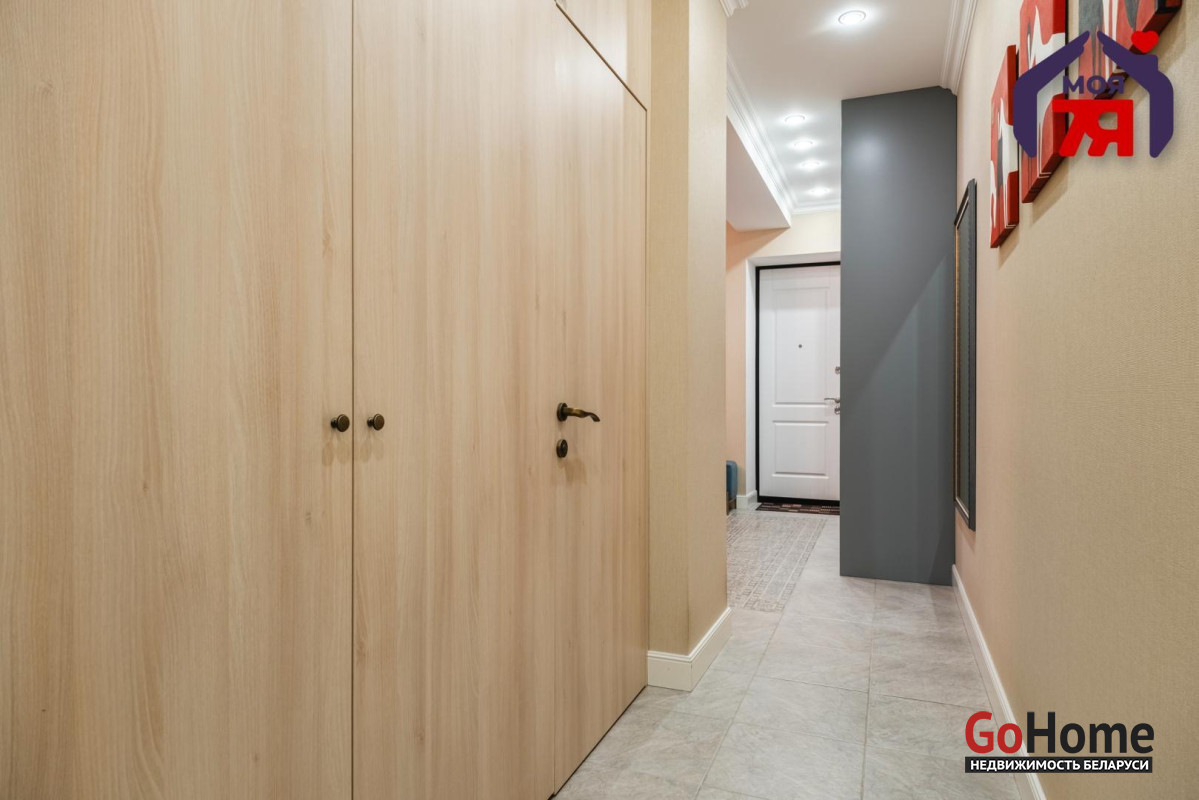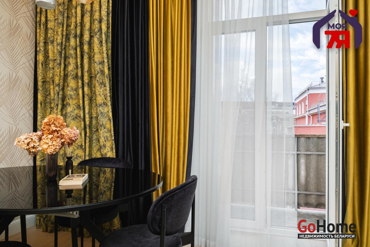 - Просторная квартира площадью 75,7 кв.м расположена на четвёртом этаже кирпичного дома сталинской эпохи с железобетонными перекрытиями. Планировка продумана до мелочей: жилая площадь составляет 45 кв.м, кухня 8,2 кв.м, из гостиной есть выход на балкон с видом во внутренний двор.- Выполнен современный евроремонт с использованием качественных материалов. Интерьер оформлен в едином стиле, где продуманы пропорции, цвет и освещение.- Кухня оборудована встроенным гарнитуром с крашеными фасадами и рабочей поверхностью из натурального камня. Вся техника фирмы SMEG входит в стоимость и включает духовой шкаф, вытяжку, посудомоечную машину, холодильник, варочную поверхность и стиральную машину.- В гостиной уложен паркет и установлена мебель премиум-класса. Комната выходит на открытый балкон, откуда открывается вид во двор. Спальня и детская оформлены аналогично: паркетная доска, качественные обои, окрашенные потолки. Вся обстановка остаётся покупателю.- Ванная и туалет раздельные. В отделке использована плитка, установлена сантехника высокого класса. Прачечная оборудована бойлером и дополнительной стиральной машиной, предусмотрены места для хранения бытовых принадлежностей.- В коридоре расположен встроенный шкаф с крашеными фасадами, на полу плитка. Работает охранная сигнализация. Входная дверь имеет повышенный уровень шумоизоляции.- Дом находится на улице Свердлова в центральной части Минска. Здесь сосредоточены главные достопримечательности и деловые объекты города. В шаговой доступности находятся метро «Площадь Ленина», торговый центр «Галилео», железнодорожный и автобусный вокзалы, гимназия, детский сад, аптеки, кафе и магазины. Поблизости расположен стадион «Динамо» и зелёные дворы, скрытые от городского шума.- Транспортная связь района обеспечивает быстрый доступ в любую часть города. До метро и вокзала пять минут пешком. Поблизости проходят основные маршруты общественного транспорта, предусмотрены удобные выезды на проспекты Независимости и Дзержинского. Локация сочетает ритм центра и развитую городскую инфраструктуру.