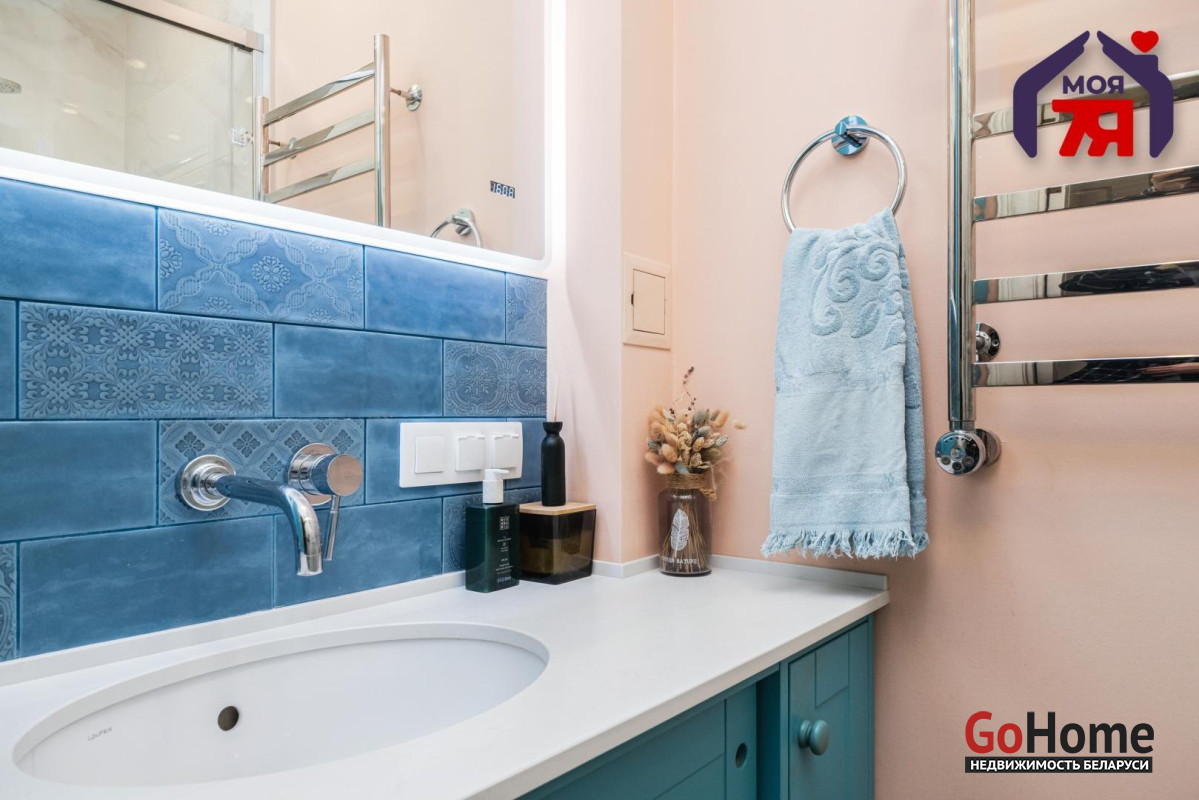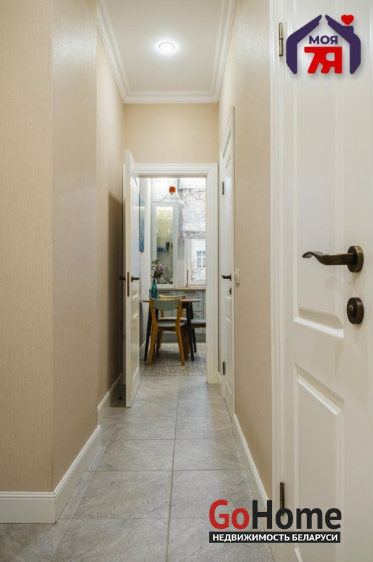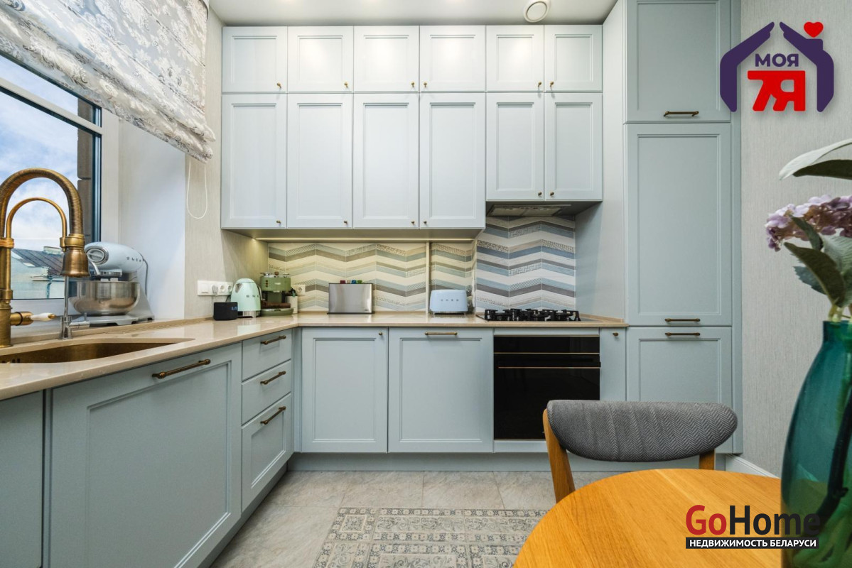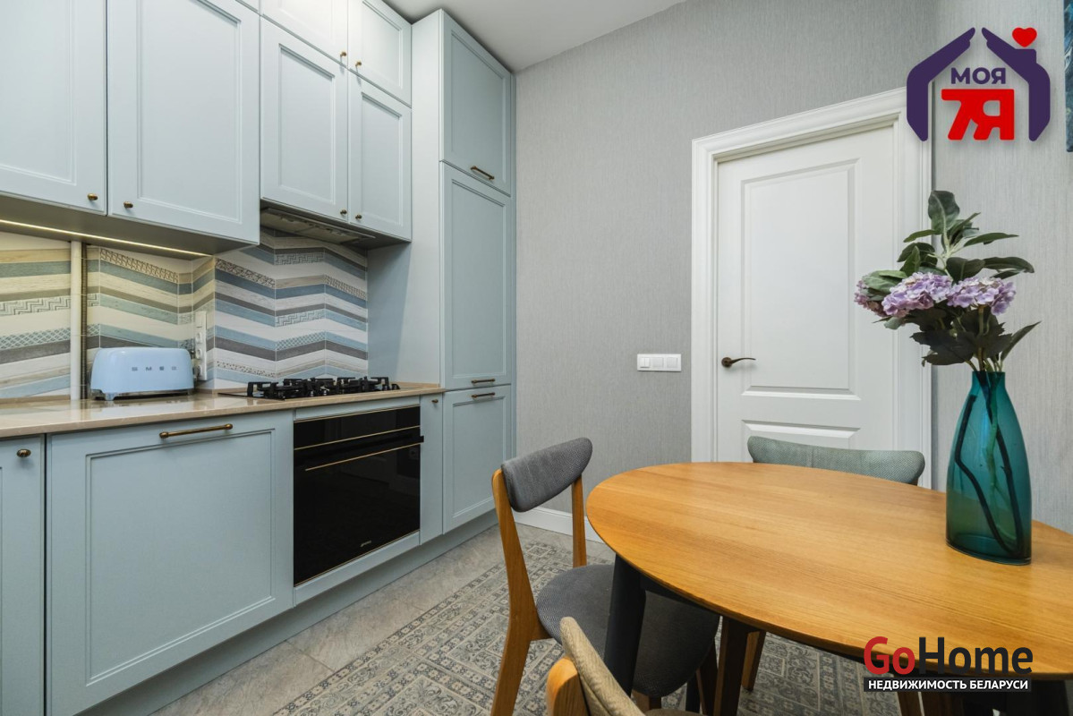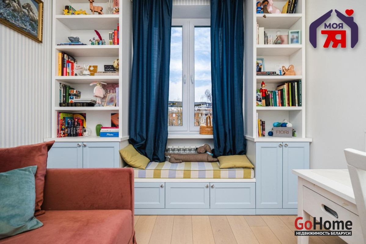 - Просторная квартира площадью 75,7 кв.м расположена на четвёртом этаже кирпичного дома сталинской эпохи с железобетонными перекрытиями. Планировка продумана до мелочей: жилая площадь составляет 45 кв.м, кухня 8,2 кв.м, из гостиной есть выход на балкон с видом во внутренний двор.- Выполнен современный евроремонт с использованием качественных материалов. Интерьер оформлен в едином стиле, где продуманы пропорции, цвет и освещение.- Кухня оборудована встроенным гарнитуром с крашеными фасадами и рабочей поверхностью из натурального камня. Вся техника фирмы SMEG входит в стоимость и включает духовой шкаф, вытяжку, посудомоечную машину, холодильник, варочную поверхность и стиральную машину.- В гостиной уложен паркет и установлена мебель премиум-класса. Комната выходит на открытый балкон, откуда открывается вид во двор. Спальня и детская оформлены аналогично: паркетная доска, качественные обои, окрашенные потолки. Вся обстановка остаётся покупателю.- Ванная и туалет раздельные. В отделке использована плитка, установлена сантехника высокого класса. Прачечная оборудована бойлером и дополнительной стиральной машиной, предусмотрены места для хранения бытовых принадлежностей.- В коридоре расположен встроенный шкаф с крашеными фасадами, на полу плитка. Работает охранная сигнализация. Входная дверь имеет повышенный уровень шумоизоляции.- Дом находится на улице Свердлова в центральной части Минска. Здесь сосредоточены главные достопримечательности и деловые объекты города. В шаговой доступности находятся метро «Площадь Ленина», торговый центр «Галилео», железнодорожный и автобусный вокзалы, гимназия, детский сад, аптеки, кафе и магазины. Поблизости расположен стадион «Динамо» и зелёные дворы, скрытые от городского шума.- Транспортная связь района обеспечивает быстрый доступ в любую часть города. До метро и вокзала пять минут пешком. Поблизости проходят основные маршруты общественного транспорта, предусмотрены удобные выезды на проспекты Независимости и Дзержинского. Локация сочетает ритм центра и развитую городскую инфраструктуру.