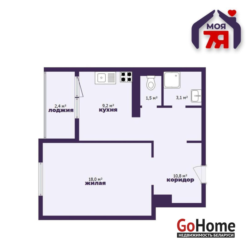 - Общая площадь квартиры 42,6 кв.м., жилая - 18 кв.м. Планировка продуманная: квартира светлая большую часть дня, окна выходят на солнечную сторону, есть полноценная отдельная комната и отдельная кухня, однако при желании можно сделать перепланировку в большую квартиру-студию.
