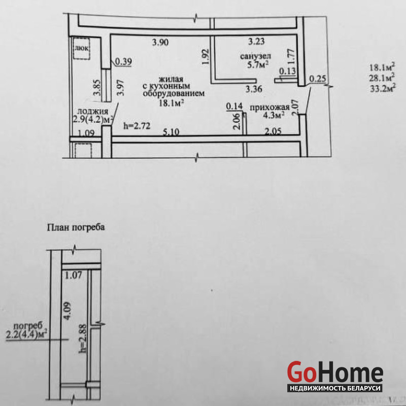 - ОБЩАЯ ПЛОЩАДЬ по СНБ — 33,2 м²;