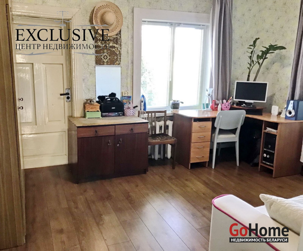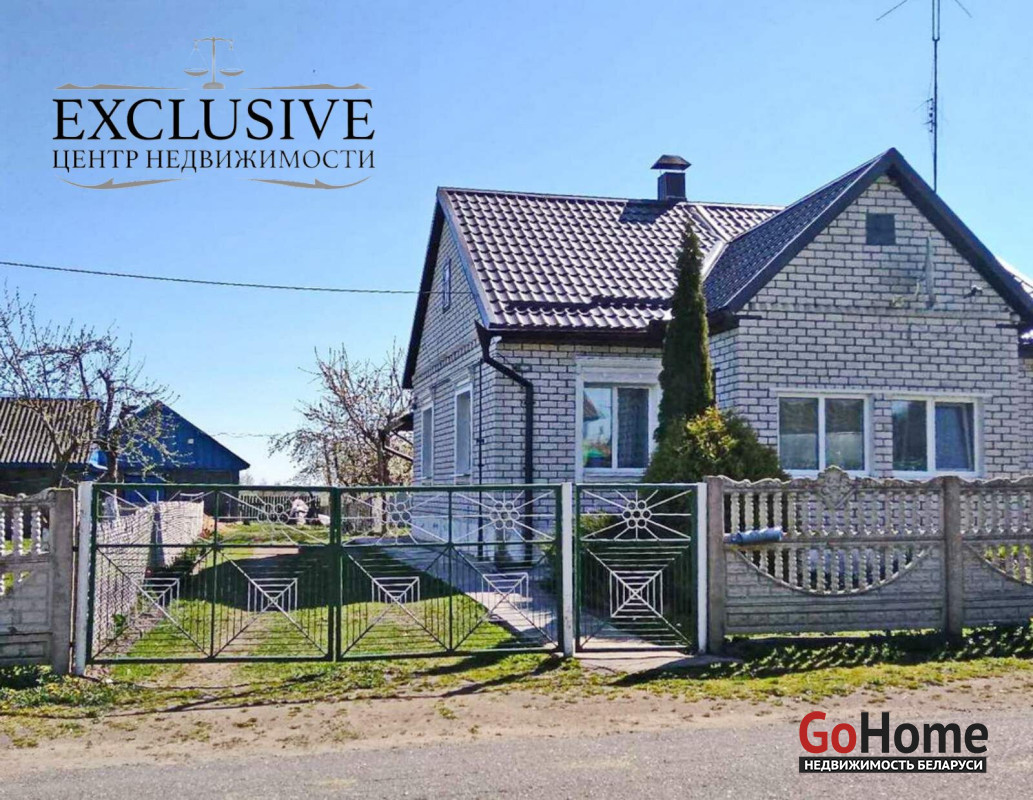 Дом в большой деревне, недалеко г.Столбцы. Дом из бревна, обложенного кирпичом, всего в доме 4 раздельных комнаты, кухня, ванная, туалет, топочная, есть веранда, общая площадь дома - 80,7 квадратных метра, два входа в дом, входные двери металлические.