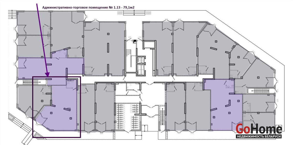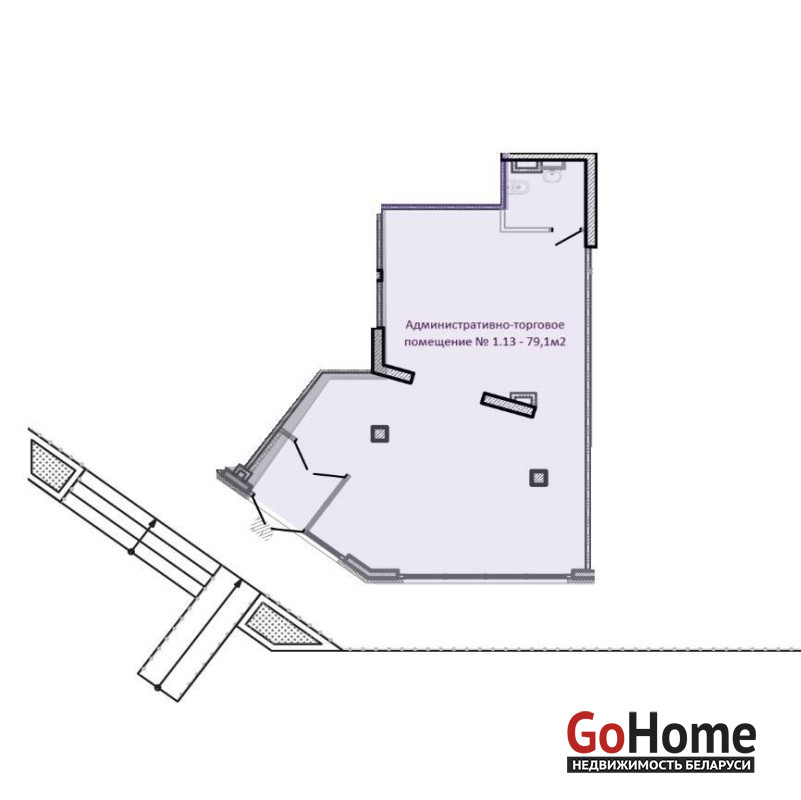 - Общая площадь помещения составляет 79,1 м2.