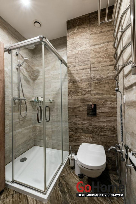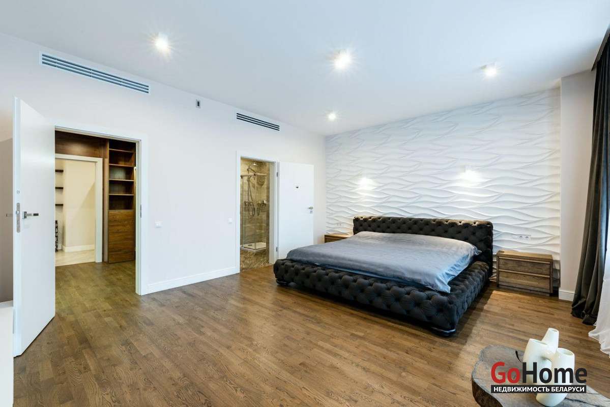 Отдельная спальня с санузлом, большой гардеробной комнатой и выходом на просторную лоджию. Есть гостевой санузел. Телевизор и мелкие бытовые приборы приобретаются под арендатора.