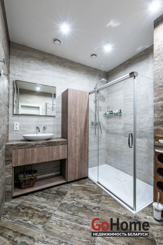 Качественный ремонт, только импортные и дорогостоящие материалы. Немецкая сантехника, итальянская плитка, мебель изготовлена по индивидуальному заказу. Гостиная совмещена с кухней. Есть посудомоечная машина, фильтр для очистки воды, система кондиционирования, пол с подогревом.
