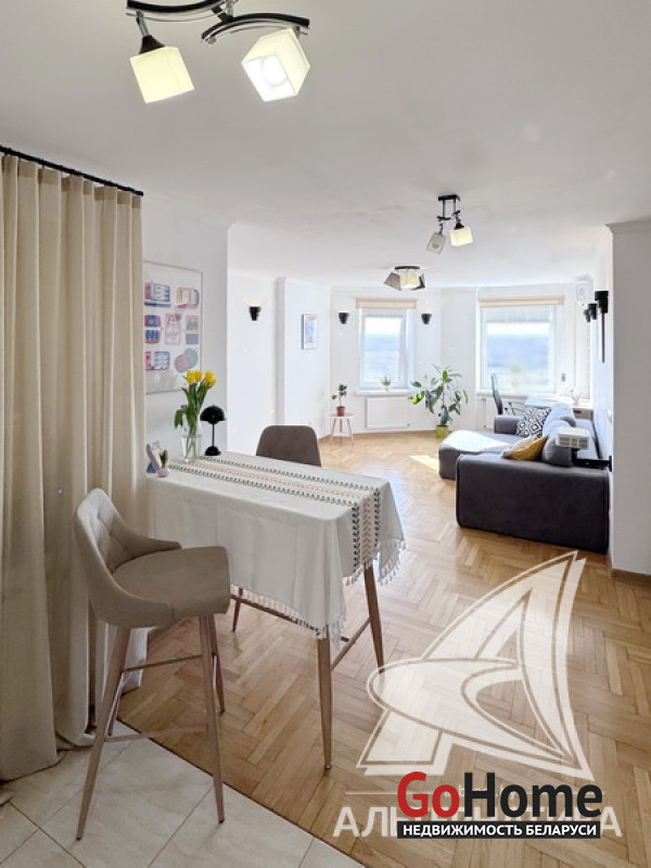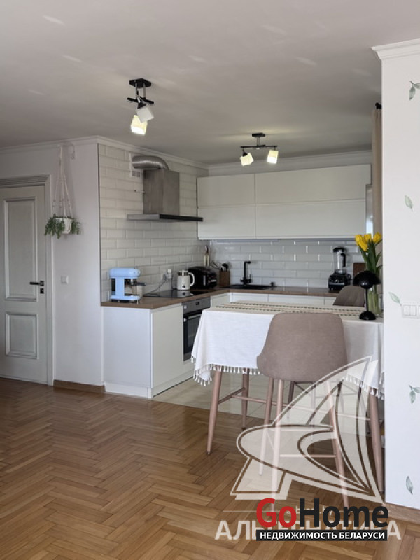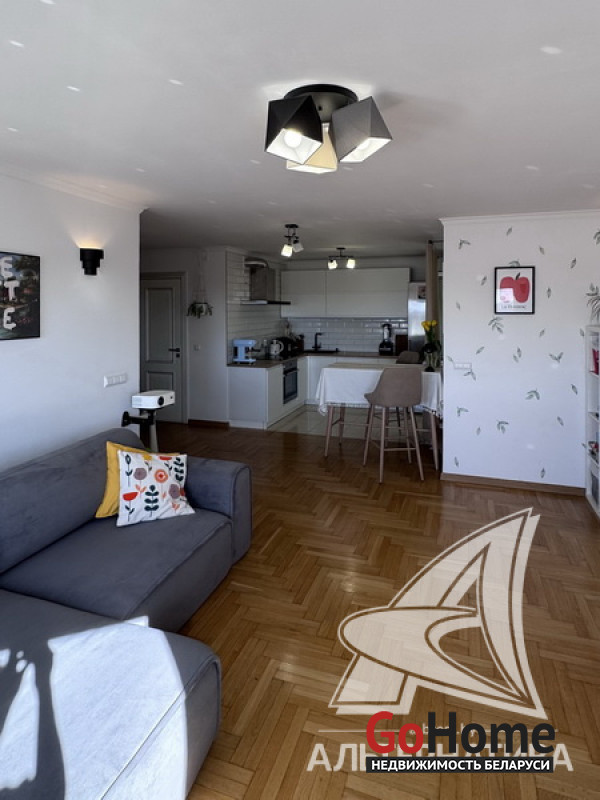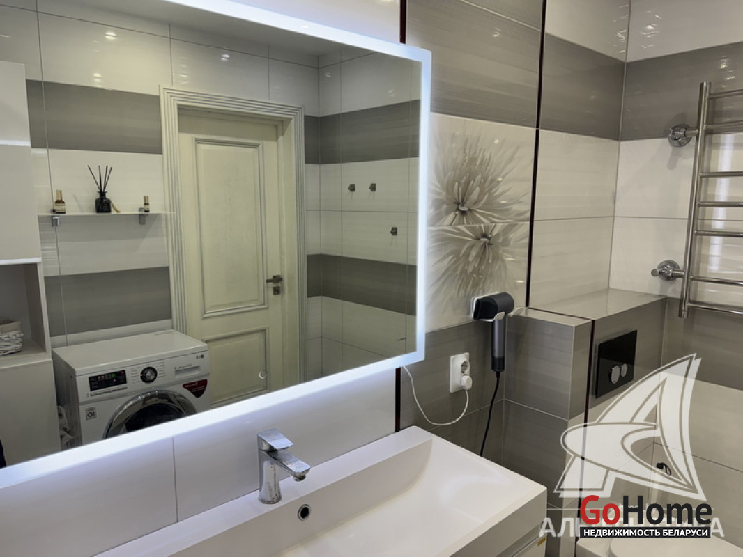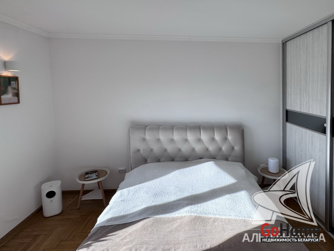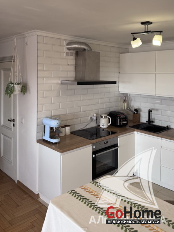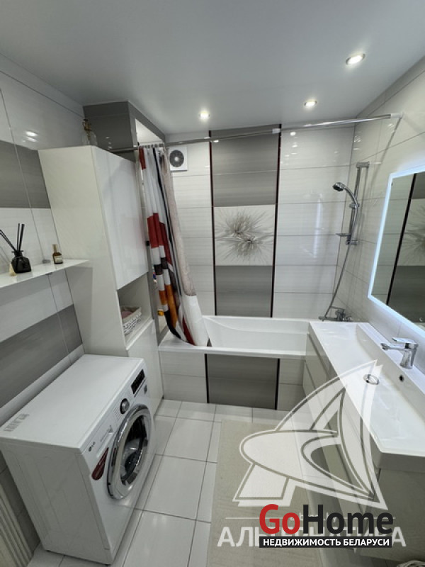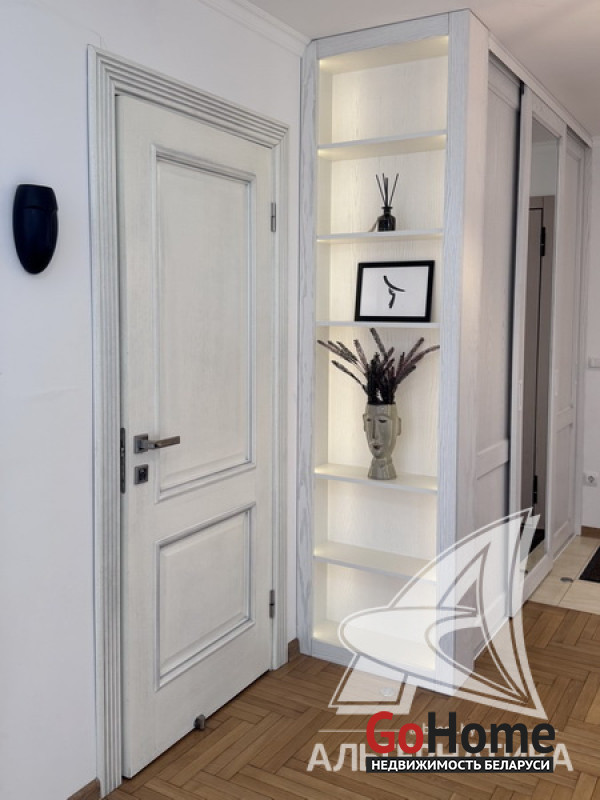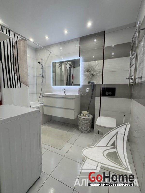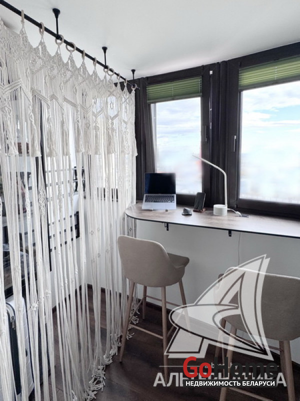 2-комнатная квартира, г. Брест, ул. Фомина, 2017 г.п., 14 / 16 блок, 61,5 / 57,9 / 32,2, санузел совмещенный, лоджия застеклена, стеклопакеты, входная дверь металлическая, потолки с разноплановой системой освещения - из гипсокартона, полы - паркет, есть подогрев пола, стены - декоративная штукатурка, в санузле современная плитка, заменена сантехника, заменен полотенцесушитель, ванна, заменены сантехнические трубы, кондиционер Gree, система видеонаблюдения (во дворе), домофон. Кухонный гарнитур (фурнитура Blum), холодильник, посудомоечная машина, варочная поверхность, духовой шкаф, вытяжка, стиральная машина, проектор Byintek, два шкаф-купе (в прихожей, в спальне), шкаф (в ванной, на лоджии). Квартира с индивидуальными дизайнерскими решениями. Окна выходят на зеленую зону. Дом оборудован пандусом. Пассажирский и грузовой лифты. Во дворе игровая детская, спортивная площадки. Лот - 260411