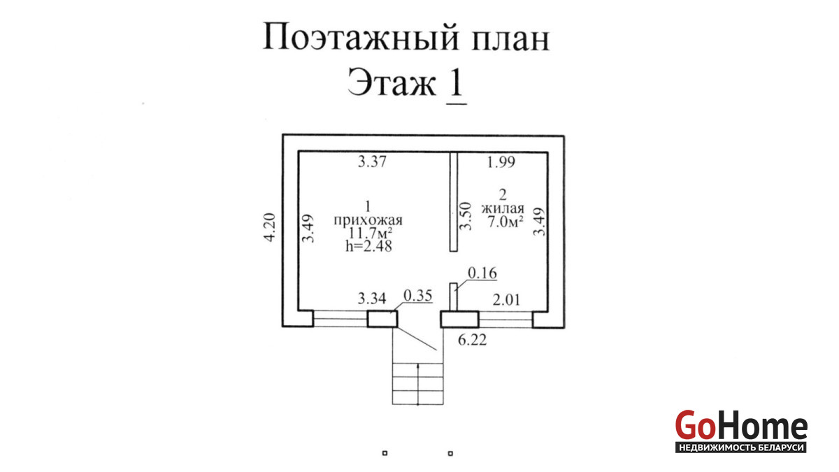 Параметры и характеристики дома. Материал стен — газосиликатные блоки, крыша из металлочерепицы. Общая площадь — 18,7м2, прихожая — 11,7м2, жилая комната — 7,0м2,