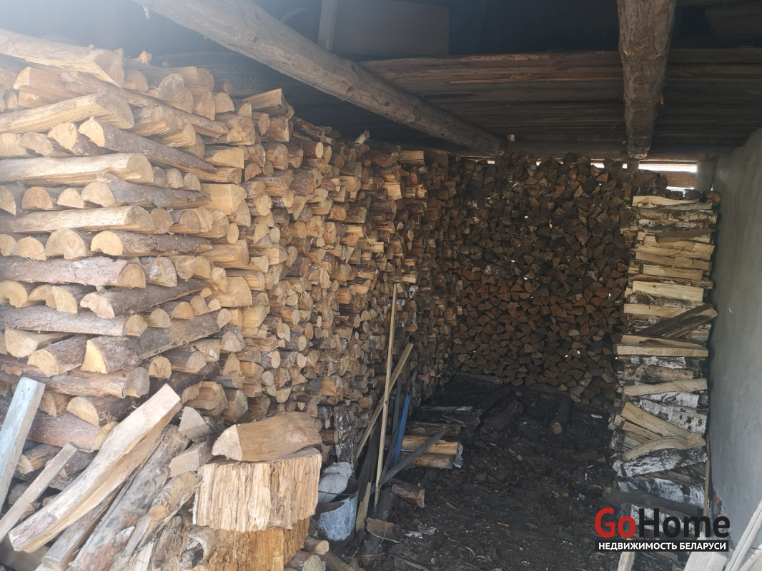 из круглого бревна и досок : большой хлев, навесы для дров и пиломатериалов