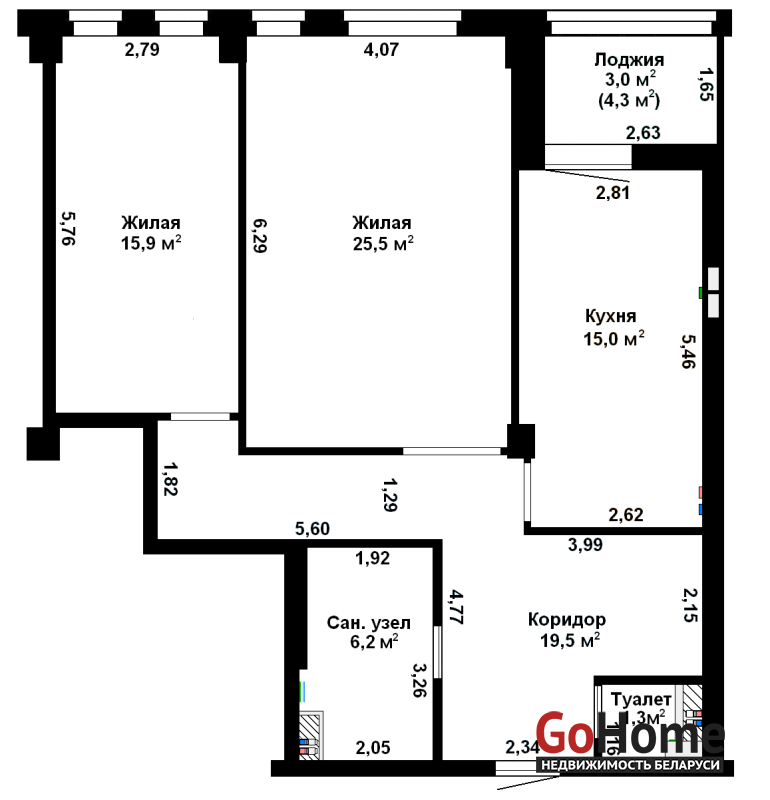 новая 2-х / 3-х комн. квартира, метро "Академия наук" (~ 550 метров, пешком 7 мин.).