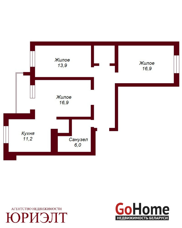 Общая площадь квартиры 83 м.кв, жилая - 47,7 м.кв, кухня - 11,2 м.кв.