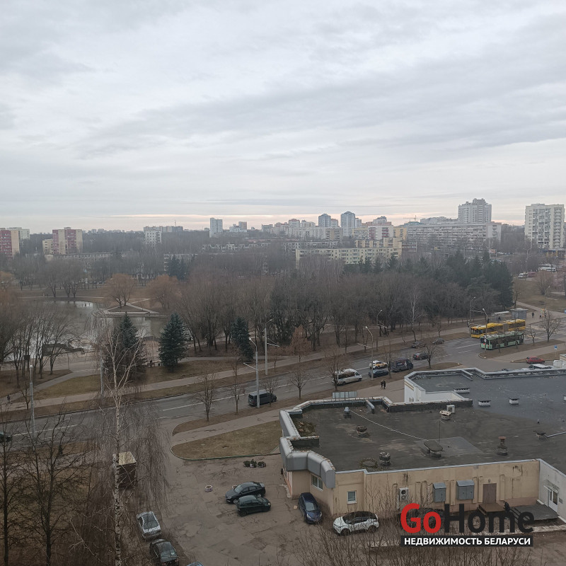 Красивый вид из лоджии на водохранилище, где плавают утки и лебеди, а другие три окна выходят на противоположную сторону во двор.