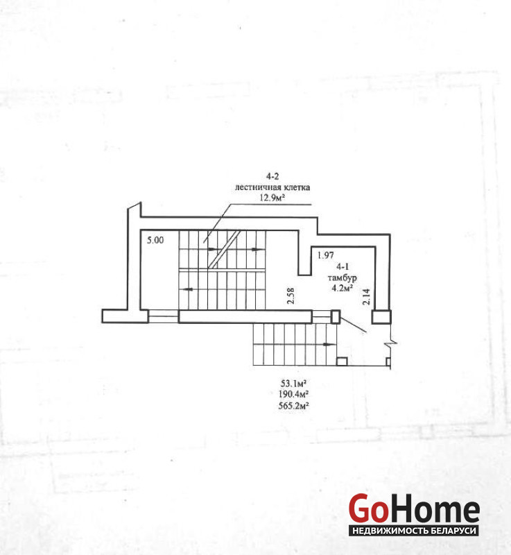 Общая площадь по СНБ - 565,2 кв.м., общая площадь - 190,4 кв.м., жилая - 53,1 кв.м . Кухня - 39,6 кв.м.