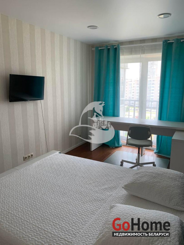 Общая площадь квартиры - 101,7 кв. м.!!!Квартира полностью укомплектована всей необходимой мебелью и техникой (посудомоечная машина, кондиционер, водонагреватель). В квартире - две полноценные спальни и гостиная-кухня, два санузла. Окна гостиной и одной из спален выходят на водохранилище. В доме есть подземный паркинг. Сдается только на длительный срок.