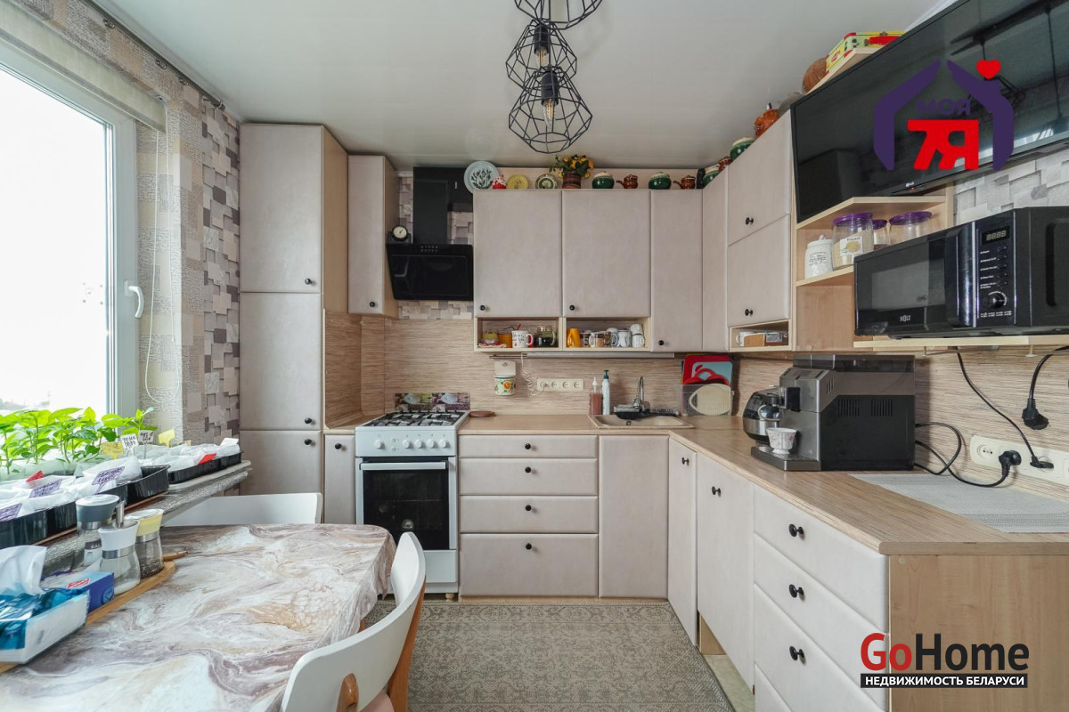 - Кухня площадью 9 м2 оснащена всем необходимым для комфортной готовки.