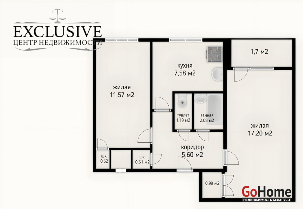Успей купить! Продается ¾ доли в двухкомнатной квартире по адресу: улица Сурганова, 49