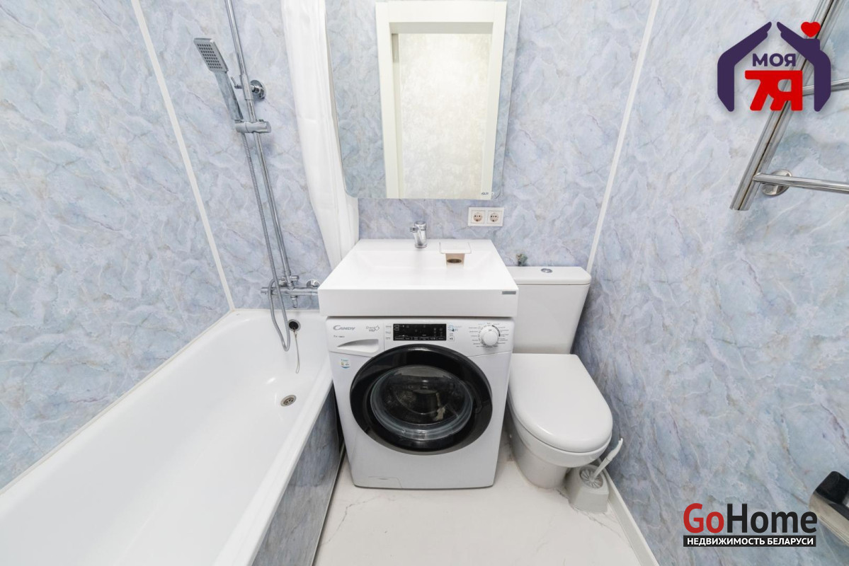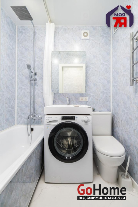 -Совмещённый санузел выполнен с особым вниманием к деталям: стены отделаны практичными ПВХ-панелями, легкими в уходе, на полу уложена керамическая плитка для гигиены и долговечности, сделан натяжной потолок. Ванна из прочного чугуна гарантирует надёжность на долгие годы, полотенцесушитель обновлён и функционален. Стиральная машина остаётся вам.