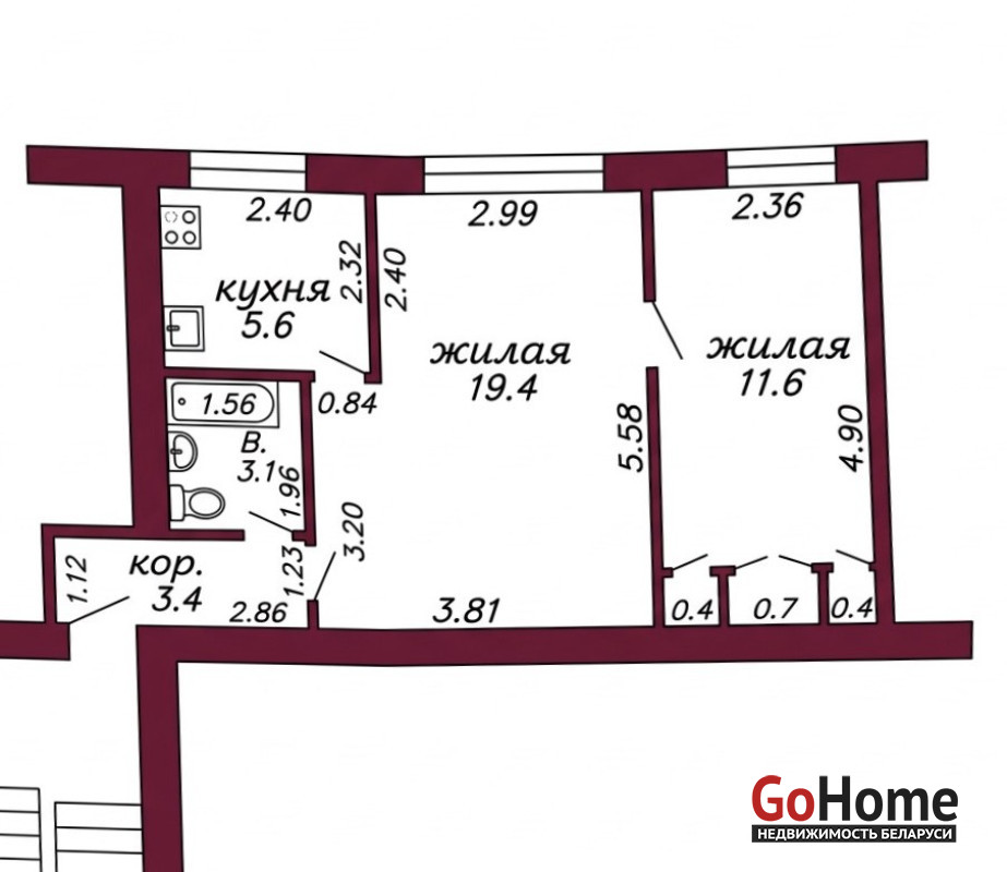 Продается 2-х комнатная квартира в г. Щучине ул. Заводская, 6 в (60 км от г. Гродно) кирпичный дом 1965 года постройки., общая площадь 44,6 м.кв., жилая площадь 31,0 м.кв., кухня 5,6 м.кв., этаж 1 из 4, санузел совмещенный.