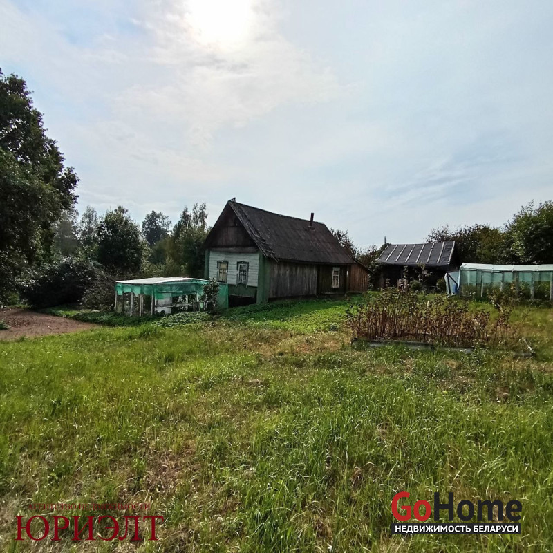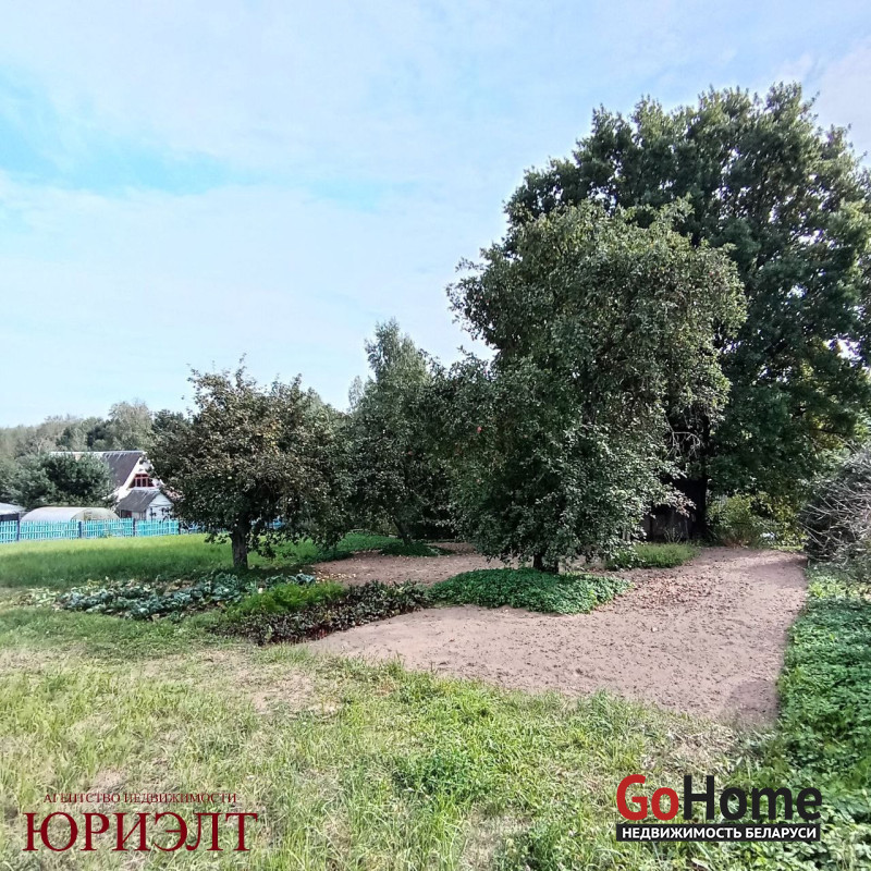 Деревянный дом не представляет архитектурного интереса, а является предметом продажи на земельном участке с оригинальным ландшафтом и вековым дубом, растут плодовые деревья. Территория больше, чем указана в документах (32 сотки) зафиксирована с трех сторон стационарными заборами соседей, четвертая сторона выходит на открытое поле через не проездную дорогу. Участок на отдалении от основного поселка, живописное и спокойное место. В доме вода, свет, стационарный телефон (Белтелеком), есть возможность подвести газ.