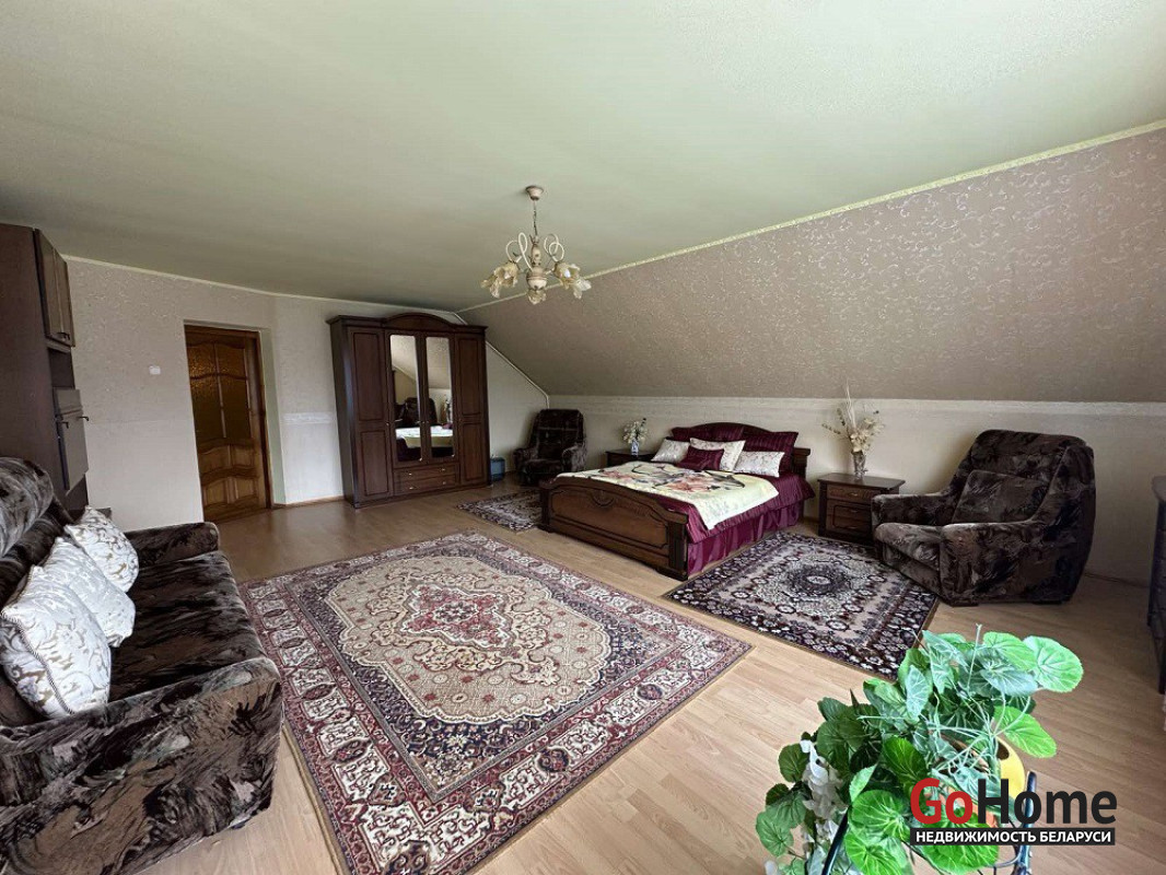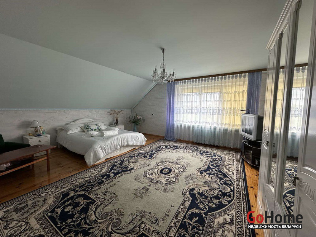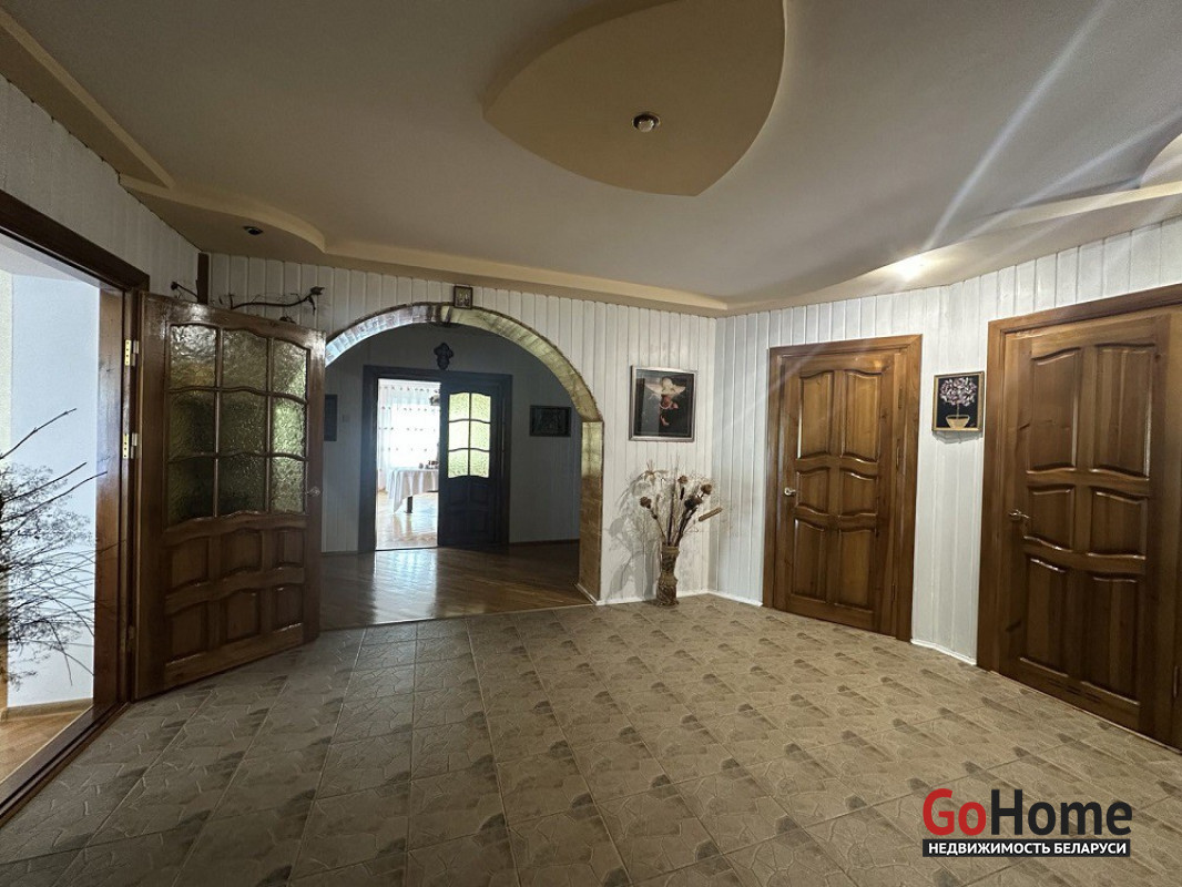 Добротный дом для загородной жизни в д. Коробчицы, общей площадью 532.8 м2 расположен на участке площадью 15.1 соток. Участок ровной формы с зелеными насаждениями.