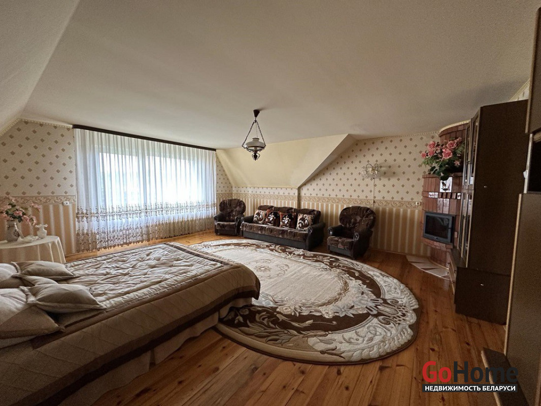 Сделан хороший ремонт. Жилая площадь дома 200 м2. Во всех окнах установлены стеклопакеты. На 1-м этаже расположены просторная и светлая гостиная с камином и отдельным выходом на лоджию, столовая,отдельная кухня 24.9 м2, санузел и холл. На 2-м этаже : 5 отдельных комнат, в одной из них есть камин, раздельный санузел, в ванной душевая кабинка.