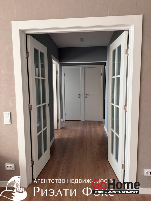 - полностью укомплектована мебелью и техникой: посудомоечная машина, стиральная машина, холодильник. Входная группа оборудована тёплым полом.
