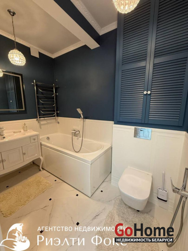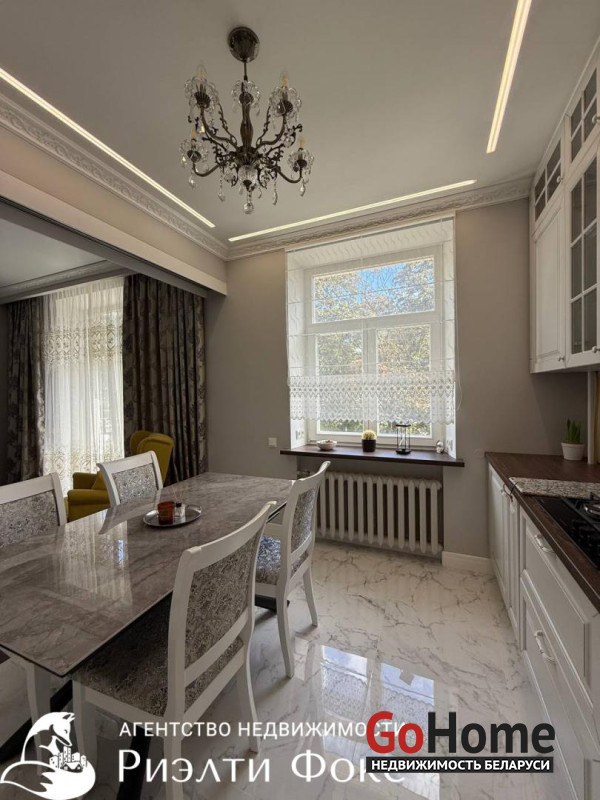 Квартира полностью укомплектована всей необходимой мебелью и техникой (посудомоечная машина, стиральная машина с функцией сушки, водонагреватель, холодильник). На полу в квартире - паркет (дуб) и плитка керамогранит. Обеденный стол выполнен из керамогранита. Размер кровати - 1800*2000, в спальне есть вместительная гардеробная. В квартире много мест для хранения. Толщина стен - 50 см, высота помещений - 2,95 м., есть балкон. Окна квартиры выходят на две стороны. Квартира готова к заселению.