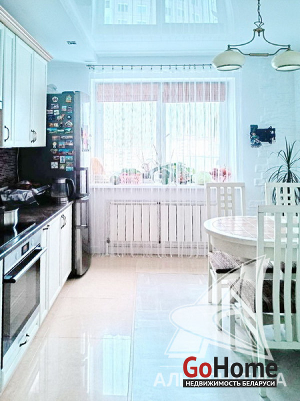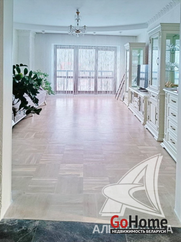 3-комнатная квартира, г. Брест, ул. Октябрьской Революции, 2011 г.п., 11 / 16 ж/б каркас + блок, 82,2 / 82,2 / 57,8 / 10,9, санузел раздельный, деревянные стеклопакеты, межкомнатные двери - массив (ольха), входная дверь металлическая, потолки (2,65) - снежка, полы - паркет и плитка, на стенах декоративная окраска и обои, в санузле современная плитка, заменена сантехника, заменен полотенцесушитель, душевой поддон, домофон. Кухонный гарнитур, варочная поверхность, духовой шкаф, вытяжка, встроенный шкаф-купе (в зале), встроенный шкаф (в коридоре, в спальне). Квартира с индивидуальными дизайнерскими решениями. Лот - 260429