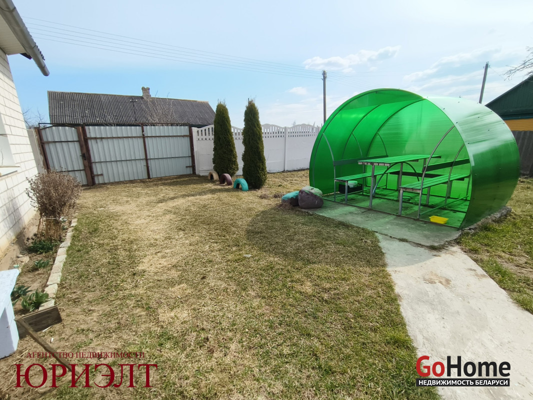 На участке площадью 25 соток расположены сарай и беседка для отдыха. Территория огорожена, имеется заезд и металлические ворота. Удобные подъездные пути, недалеко имеется магазин (5 мин пешком), остановка общественного транспорта до г. Барановичи, школа (недалеко от дома), 4 км от ТЦ "Довод" (6 мин. на машине), Несвижское направление.