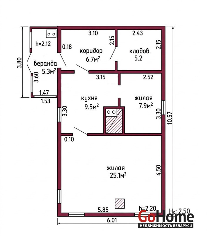 Площадь дома 54,4 / 33 / 9,5