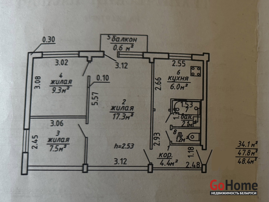 Общая площадь: 48 м²