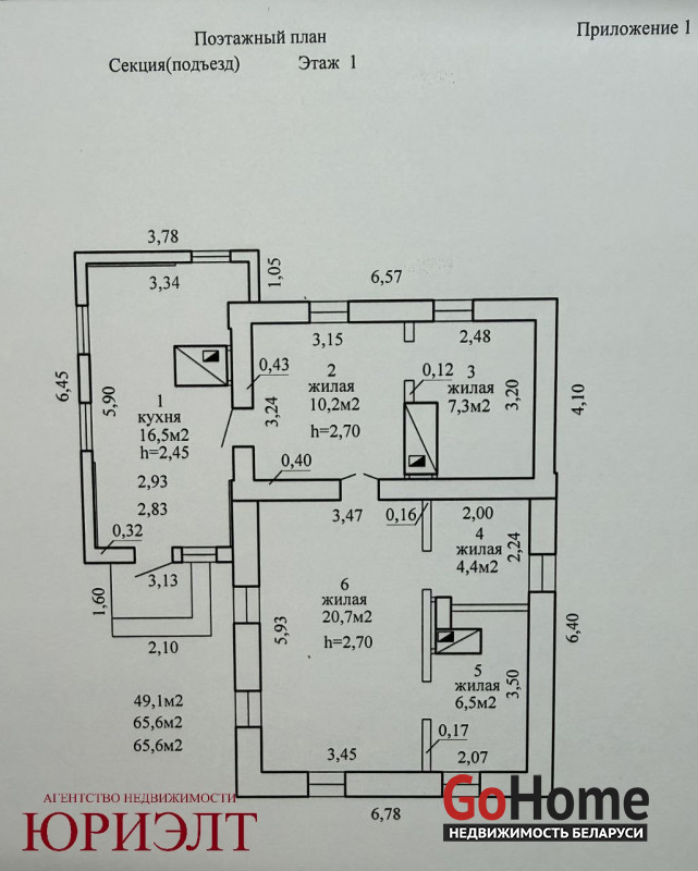 Общая площадь дома 65,6м2.