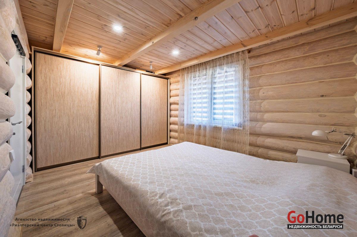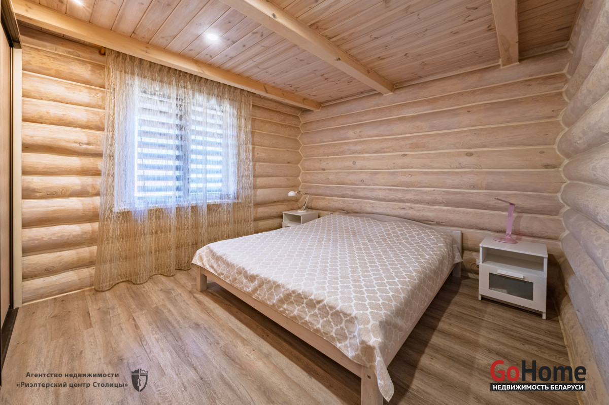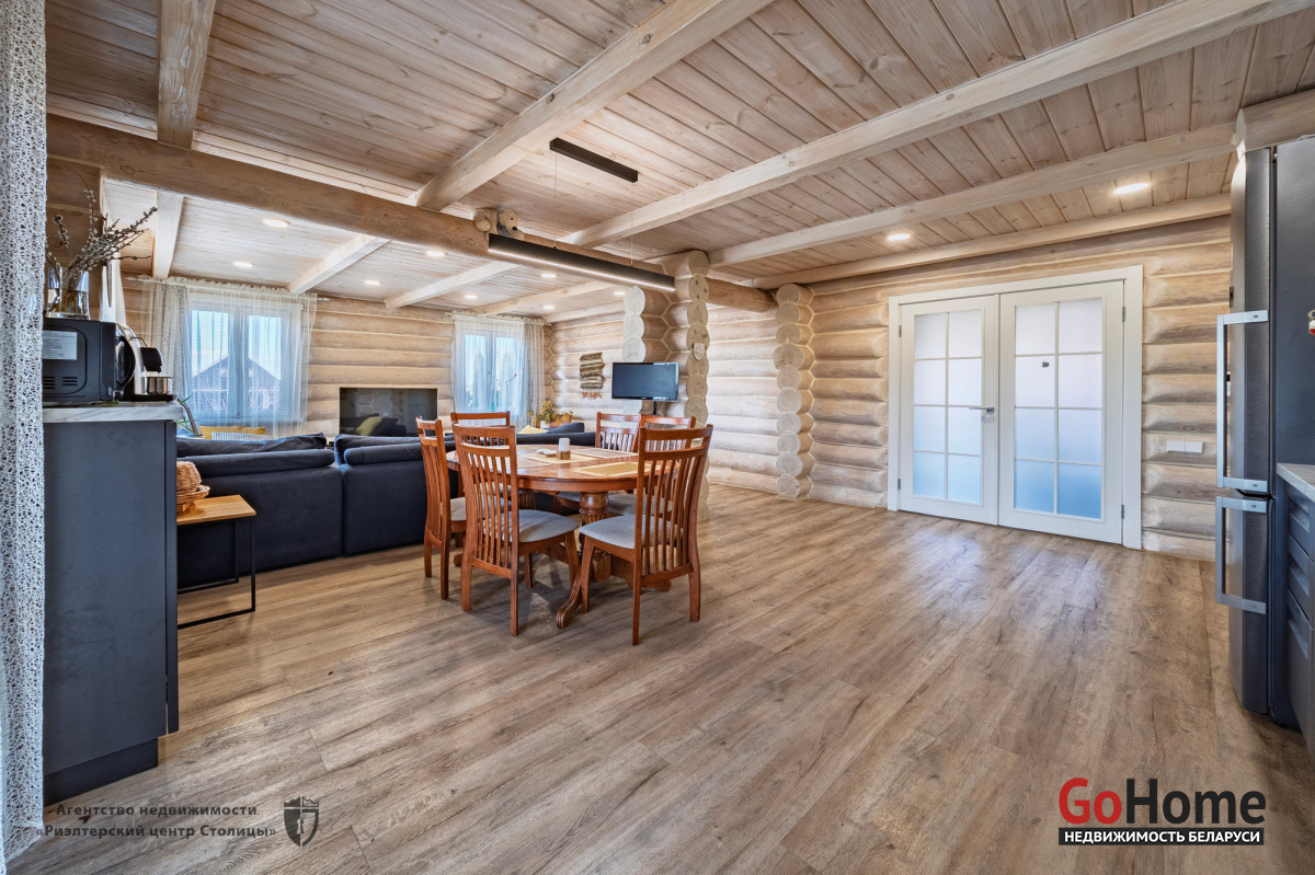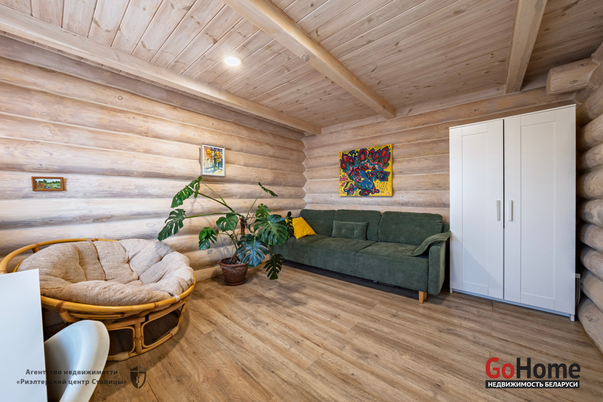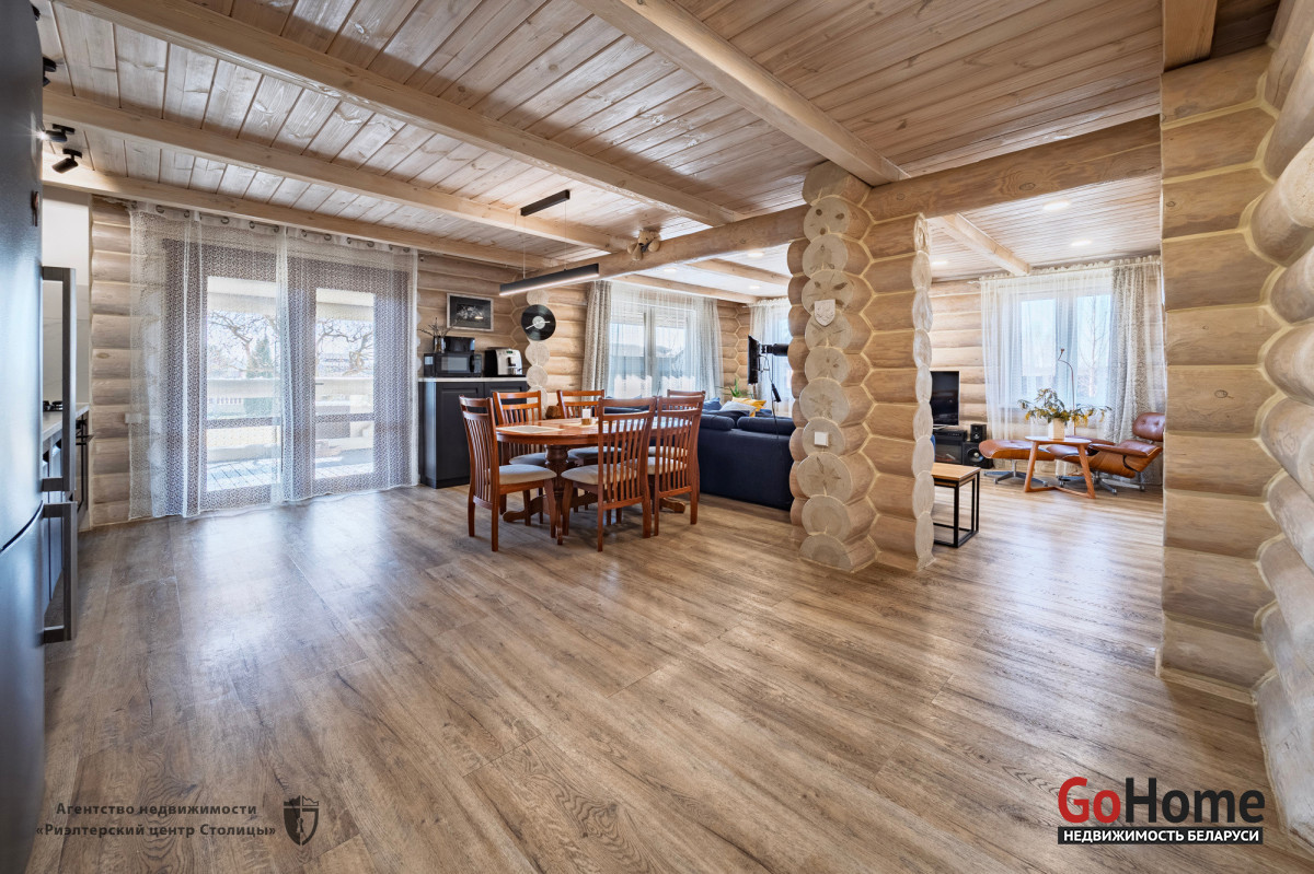 Этот великолепный коттедж из цельного сруба, расположен в живописном уголке природы, всего в 2 км от Минского моря (15 км от МКАД).