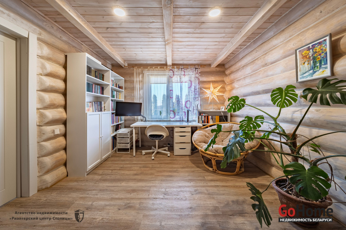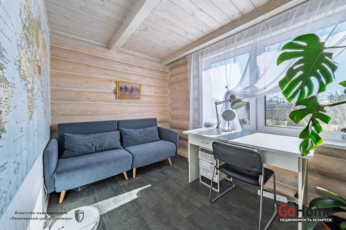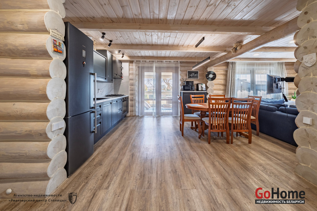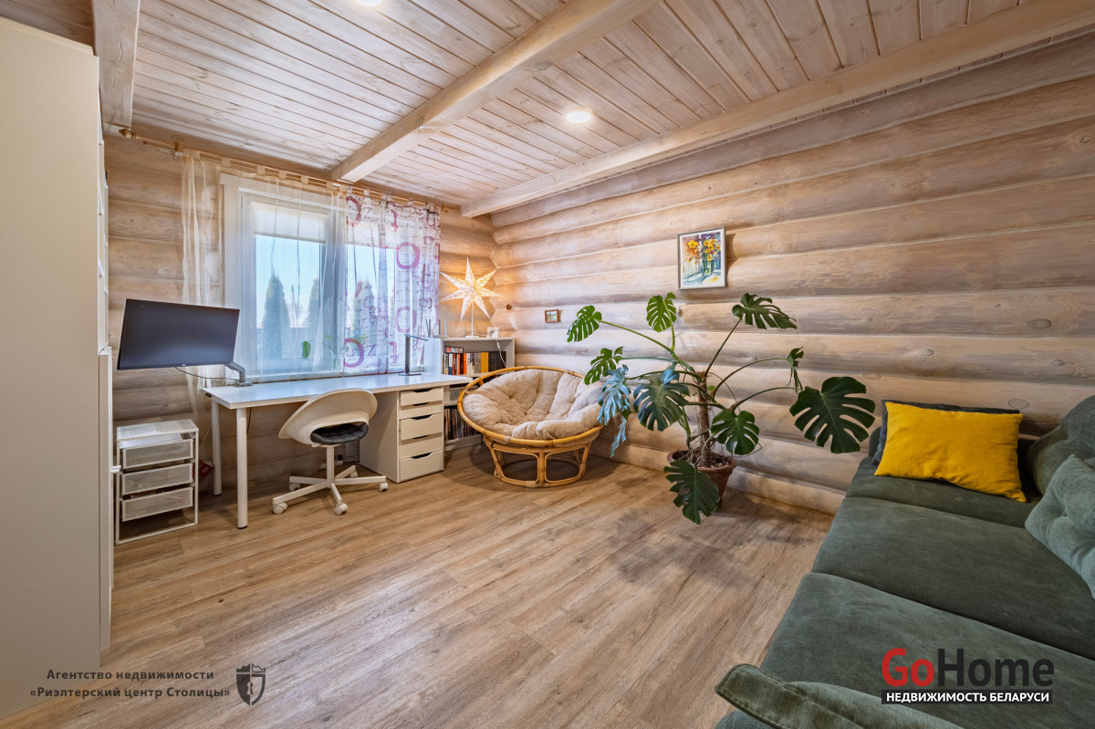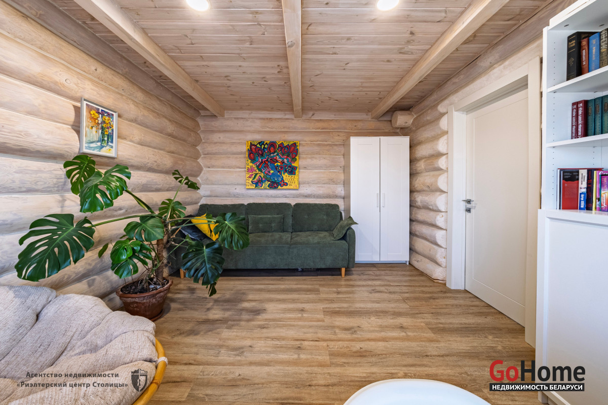 Этот великолепный коттедж из цельного сруба, расположен в живописном уголке природы, всего в 2 км от Минского моря (15 км от МКАД).